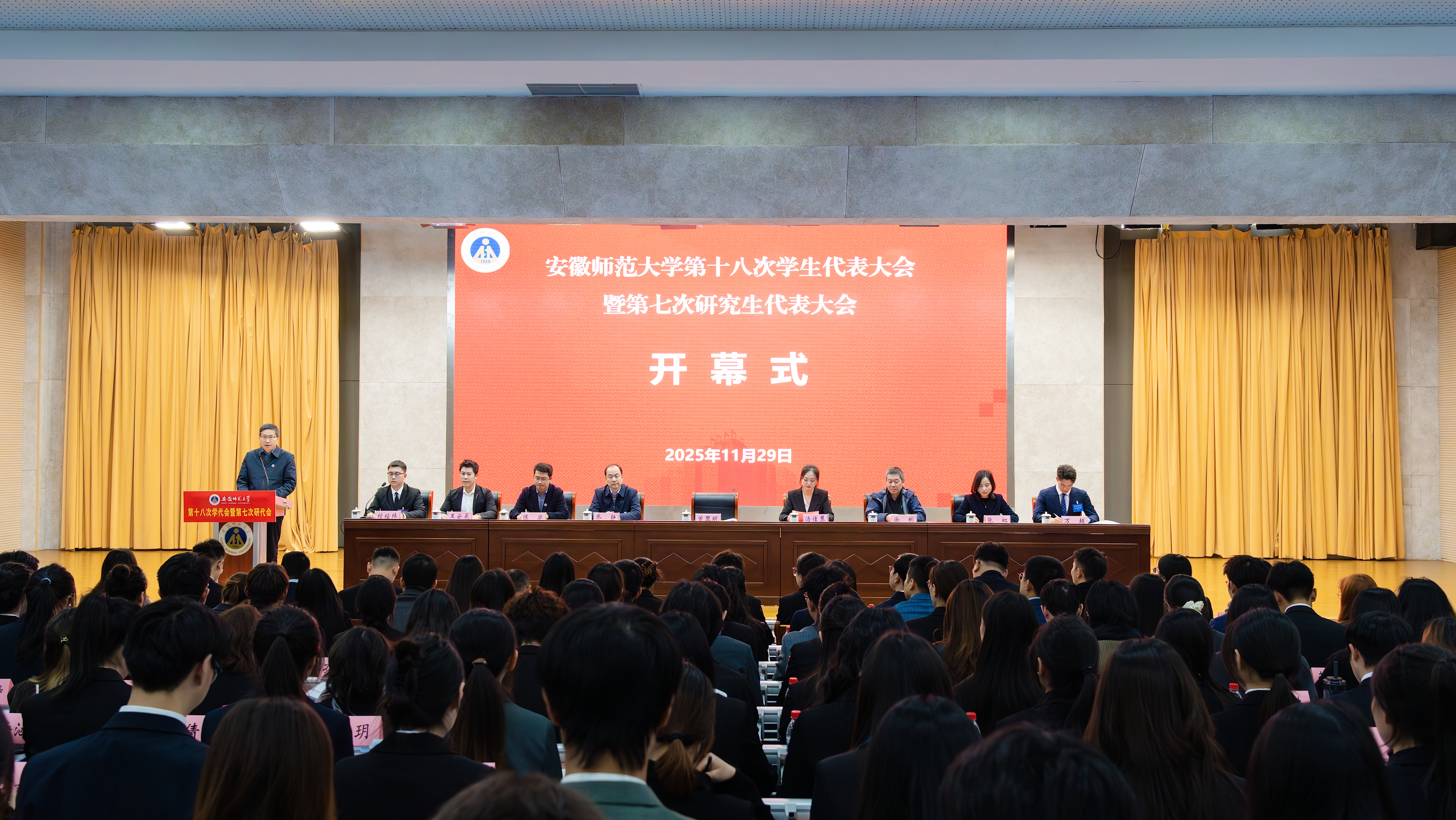 || 11月29日,安徽师范大学第十八次学生代表大会暨第七次研究生代表大会在花津校区召开。校党委副书记曾黎明出席开幕式并讲话,省学联驻会执行主席汤佳慧,学工部、研工部、团委负责人出席开幕式。大会主席团执行主席檀经纬主持开幕式。348名学代会代表、91名研代会代表肩负学校4万余名本科生、研究生的期望与重托,认真履职参会。曾黎明代表学校向大会的召开表示热烈的祝贺,向全体代表和全校青年学生致以亲切问候,并对校院两级学生会组织过去一年的工作成效给予充分肯定。...