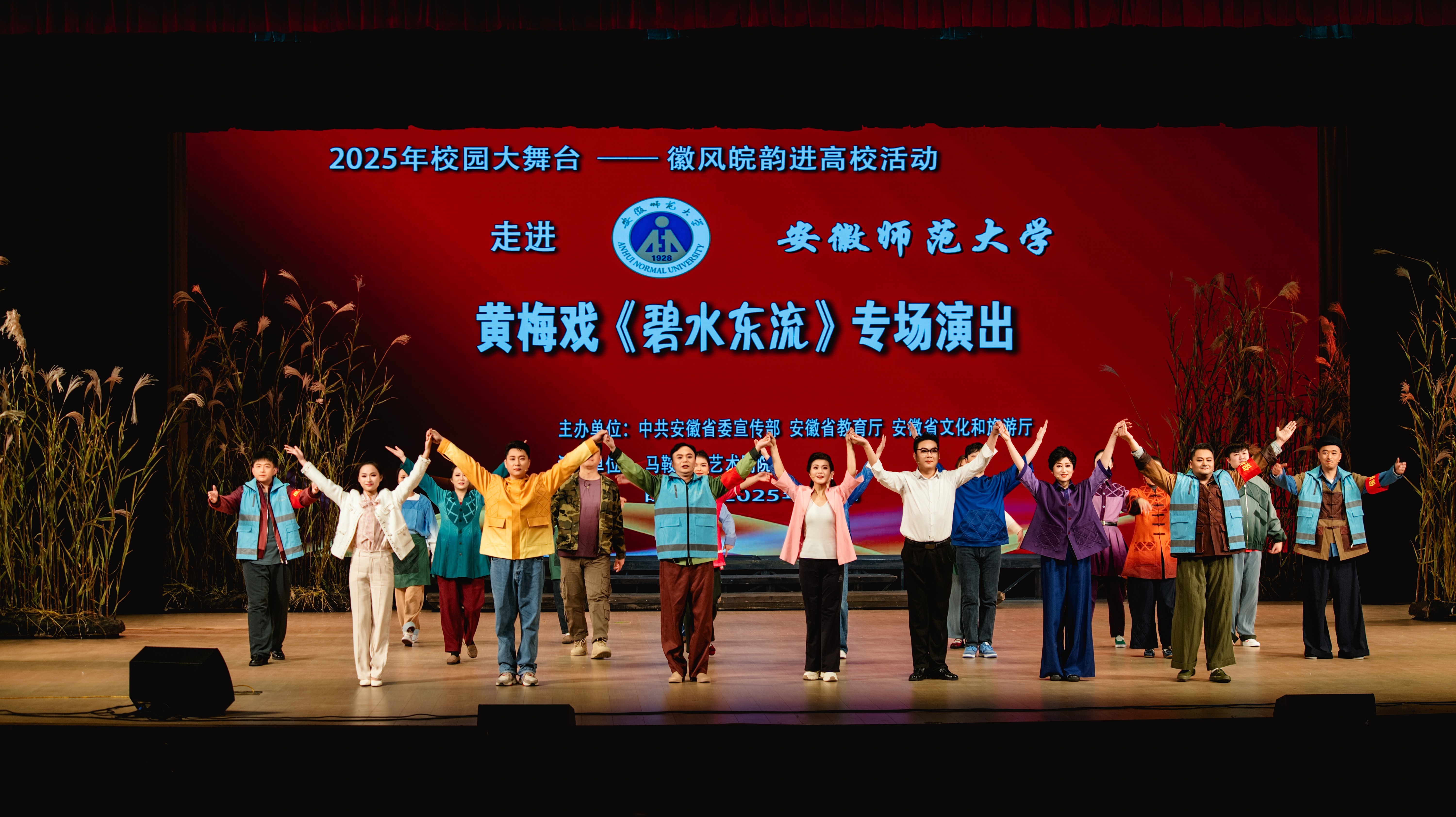 || 12月12日晚,由中共安徽省委宣传部、省教育厅、省文化和旅游厅联合主办的“徽风皖韵进高校”活动走进安徽师范大学。马鞍山市艺术剧院携黄梅戏创新剧目、大型现代黄梅戏《碧水东流》在花津校区礼堂登台演绎,生动讲述渔民“三姑娘”退捕上岸的故事和“人民保护长江、长江造福人民”的当代实践,为近800名师生呈现了一场传统艺术与现代叙事交融的视听盛宴,引发强烈共鸣。作为安徽省重点文艺项目、国家艺术基金大型舞台剧和作品资助项目,...