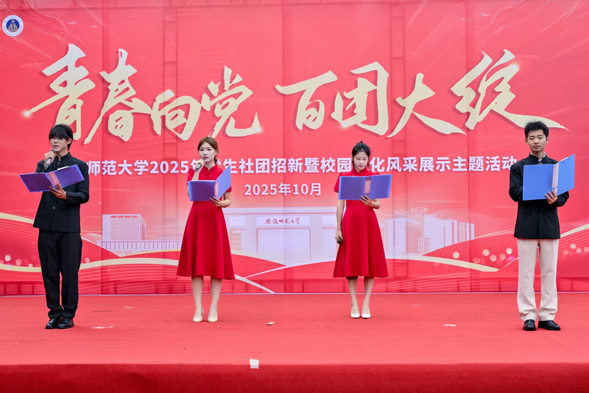 10月19日,2025年“青春向党 百团大绽”学生社团招新暨校园文化风采展示主题活动在花津校区和赭山校区同步开展。校党委副书记胡靖,学工部、研工部、团委相关负责人深入活动现场,与师生亲切交流。活动现场,76个学生社团划分为五大展区,各类特色活动亮点纷呈。在思政类社团展区,中国特色社会主义理论体系研究会等社团采用党史知识答题等形式,于潜移默化中厚植学子的家国情怀;绿色环保类展区内,非遗青年社、大学生生命科学协会等社团带来漆扇制作、...