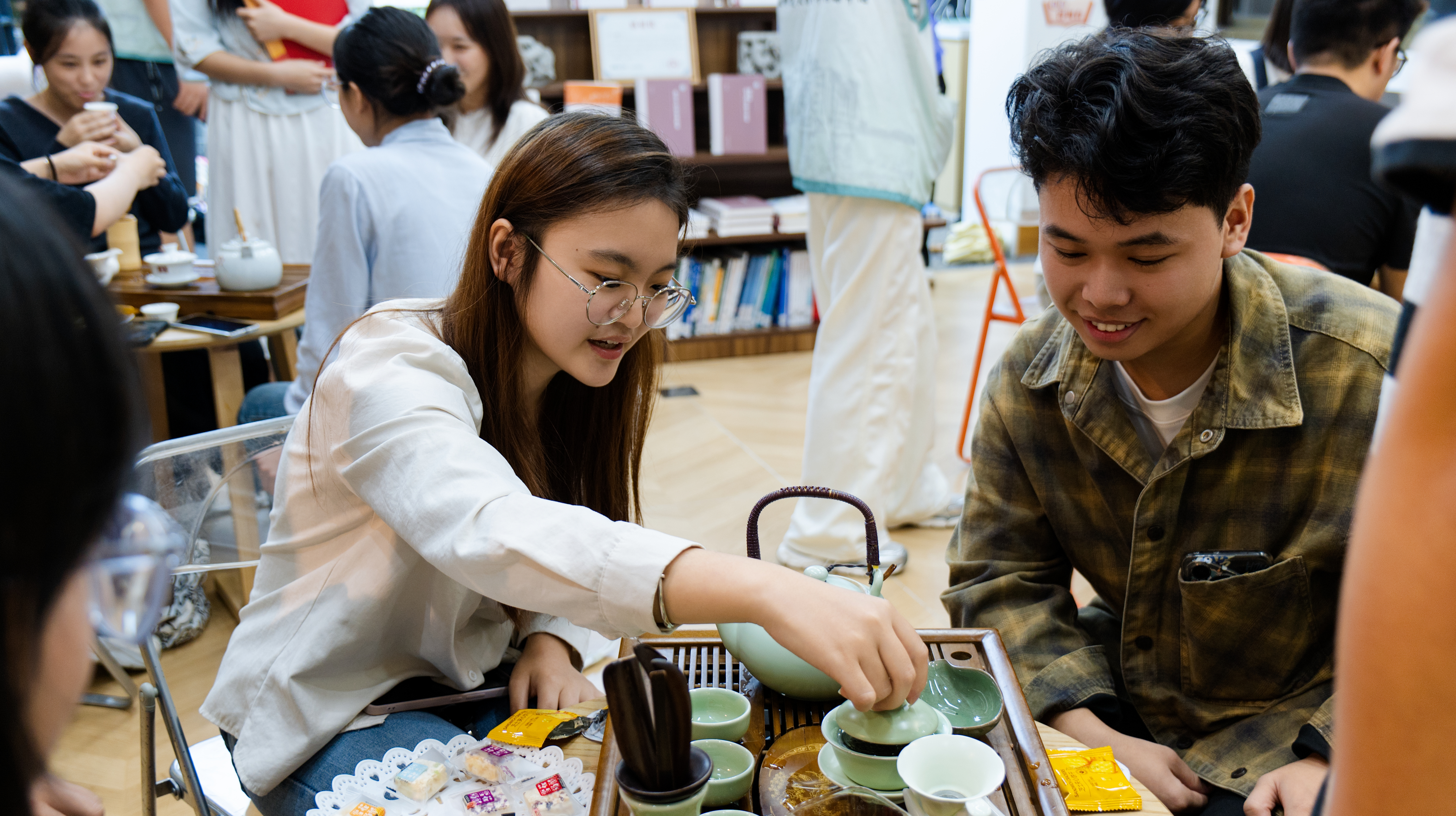 2025年10月17日晚,由校学生会,礼仪与茶文化协会联合举办的第一期“赭麓夜校”青年发展角主题活动在花津校区大学生活动中心二楼望道书屋顺利举行。本次活动以茶文化为主题,旨在通过沉浸式体验,引导青年学子走近中华优秀传统文化,从观望者转变为积极参与者与自觉传播者。