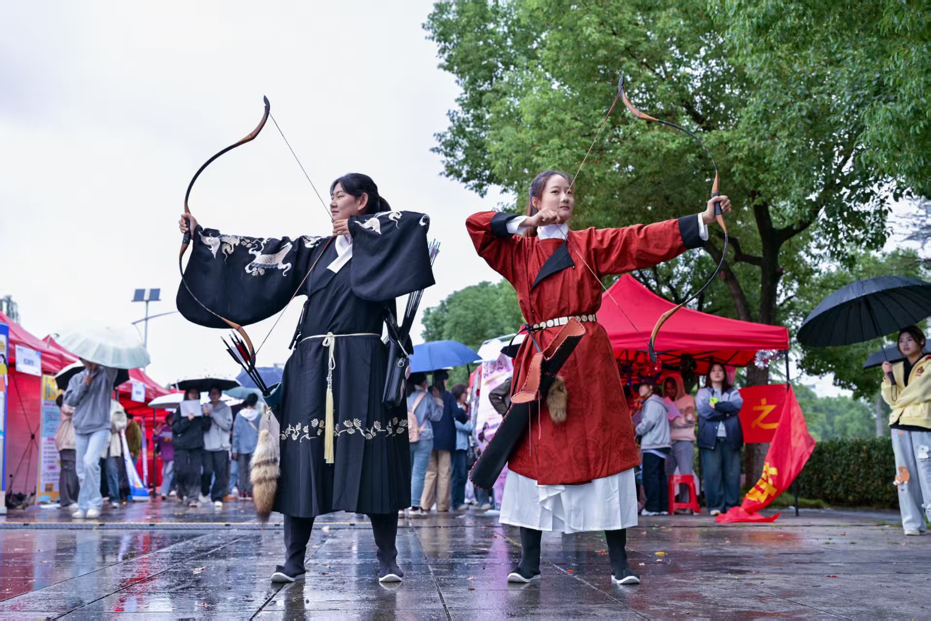 活动现场,76个学生社团划分为五大展区,各类特色活动亮点纷呈。在思政类社团展区,中国特色社会主义理论体系研究会等社团采用党史知识答题等形式,于潜移默化中厚植学子的家国情怀;绿色环保类展区内,非遗青年社、大学生生命科学协会等社团带来漆扇制作、植物拓印等特色体验,将生态环保理念融入实践;文体艺韵类社团展区里,观德正心射箭协会、青风戏曲社等通过射箭互动、听曲识名等活动,传递体育竞技活力与传统文化韵味;学术科技类社团则以电子互动游戏、地理拼图等形式,沉浸式激发学子的创新思维与探索热情;志愿公益类社团展区中,环境保护协会采用垃圾分类宣讲等形式,吸引众多同学驻足参与。