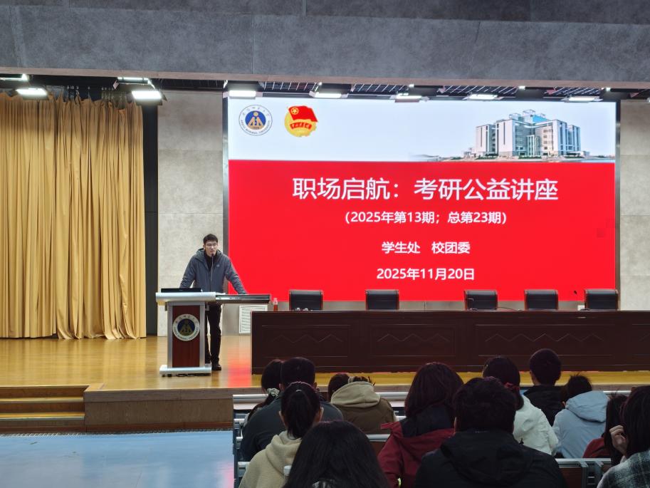 11月20日晚,“职场启航”考研公益讲座专场在花津校区理科大楼报告厅举行,邀请彭利平老师担任主讲,550余名考研学生现场聆听。