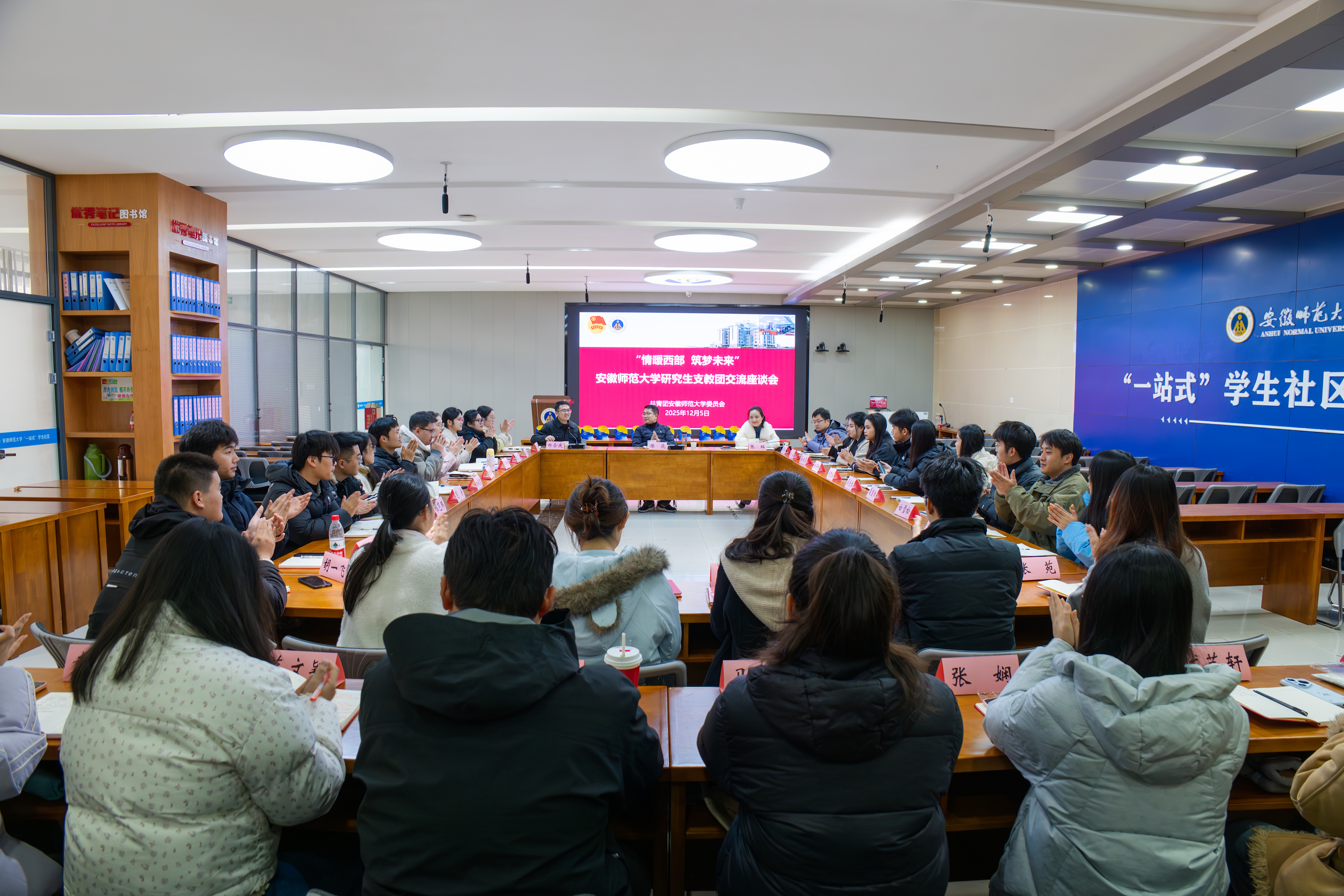12月5日,在第40个国际志愿者日来临之际,“情暖西部 筑梦未来”安徽师范大学研究生支教团交流座谈会在大学生活动中心一楼学生之家召开。校团委书记陈骁、校团委副书记张虹、研究生支教团指导老师郑合庆,第26届研究生支教团成员及第28届研究生支教团全体成员参加座谈交流。会议由郑合庆主持。