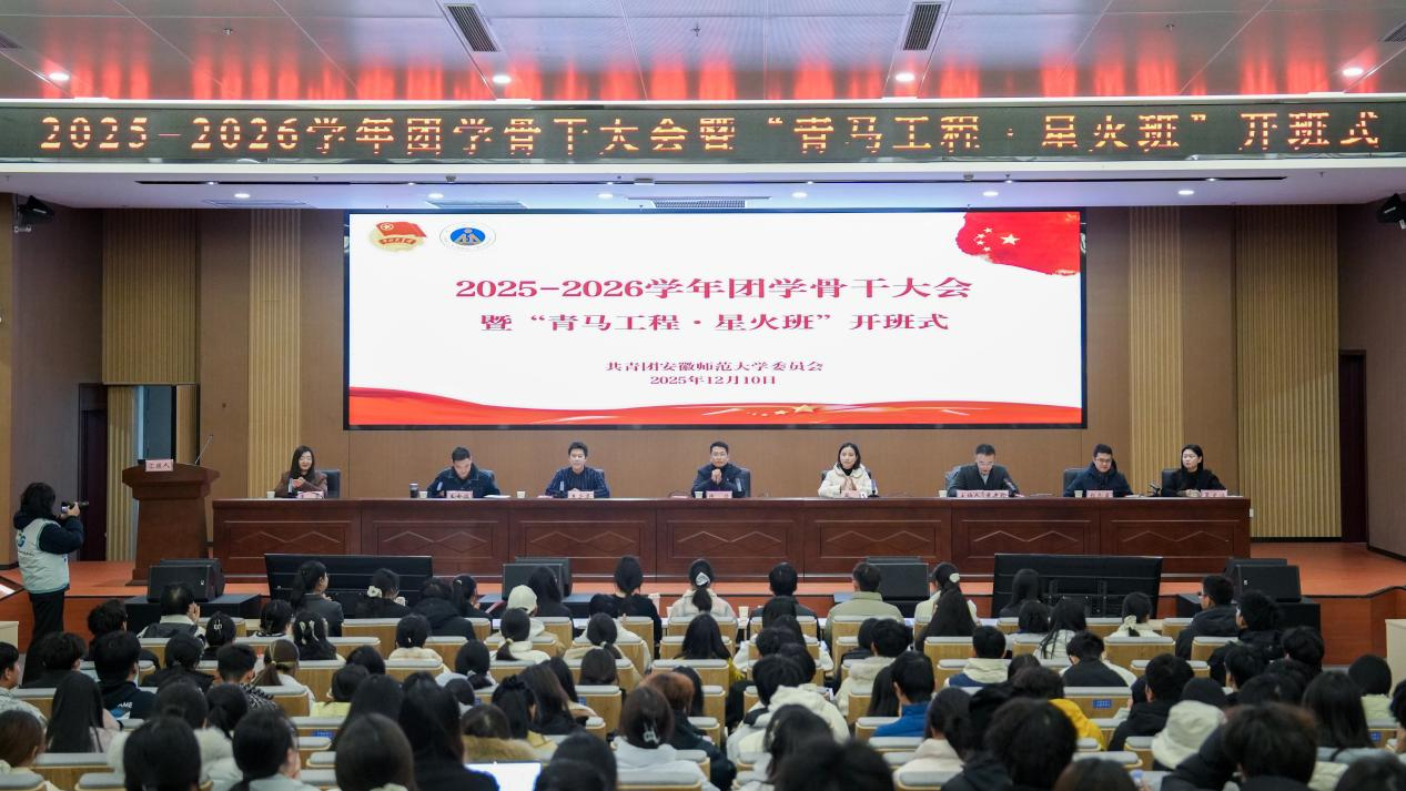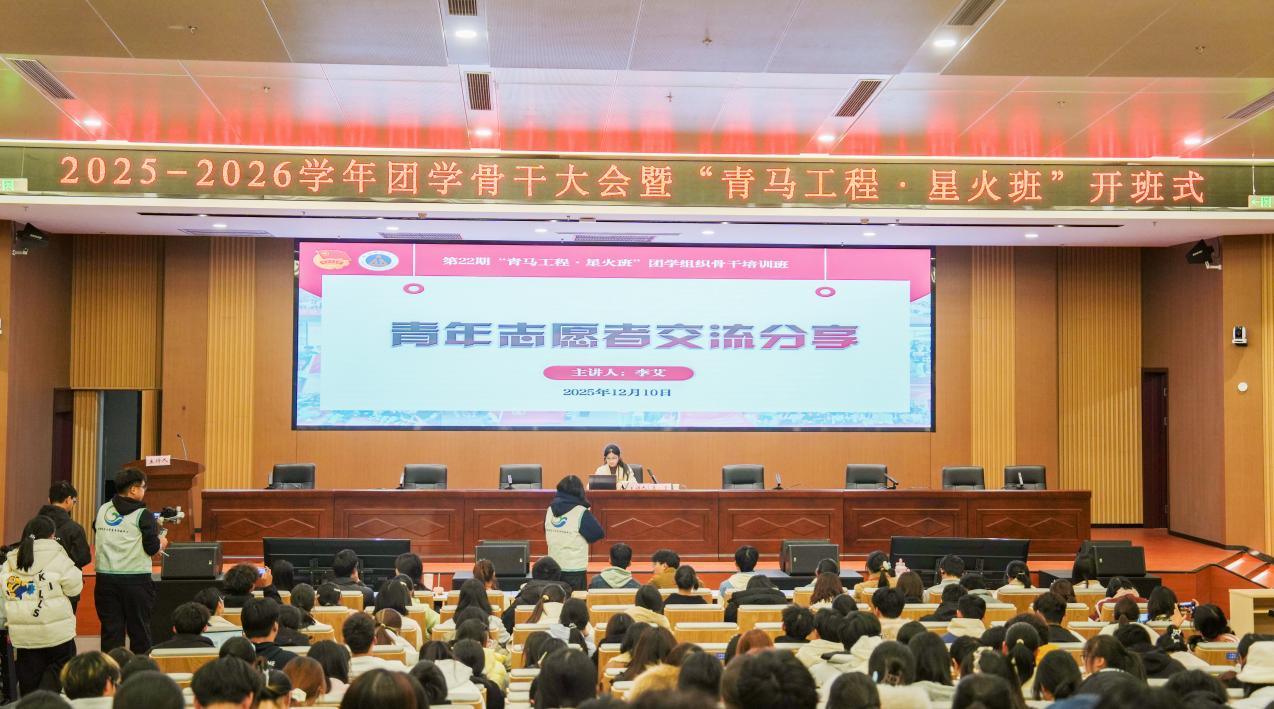 12月10日下午,学校召开2025-2026学年团学骨干大会暨“青马工程·星火班”开班式。校团委全体专兼职干部、校团委各专项中心、校学生会全体工作人员,各学院学生会主席团成员代表,各学生社团主要负责人参加大会。