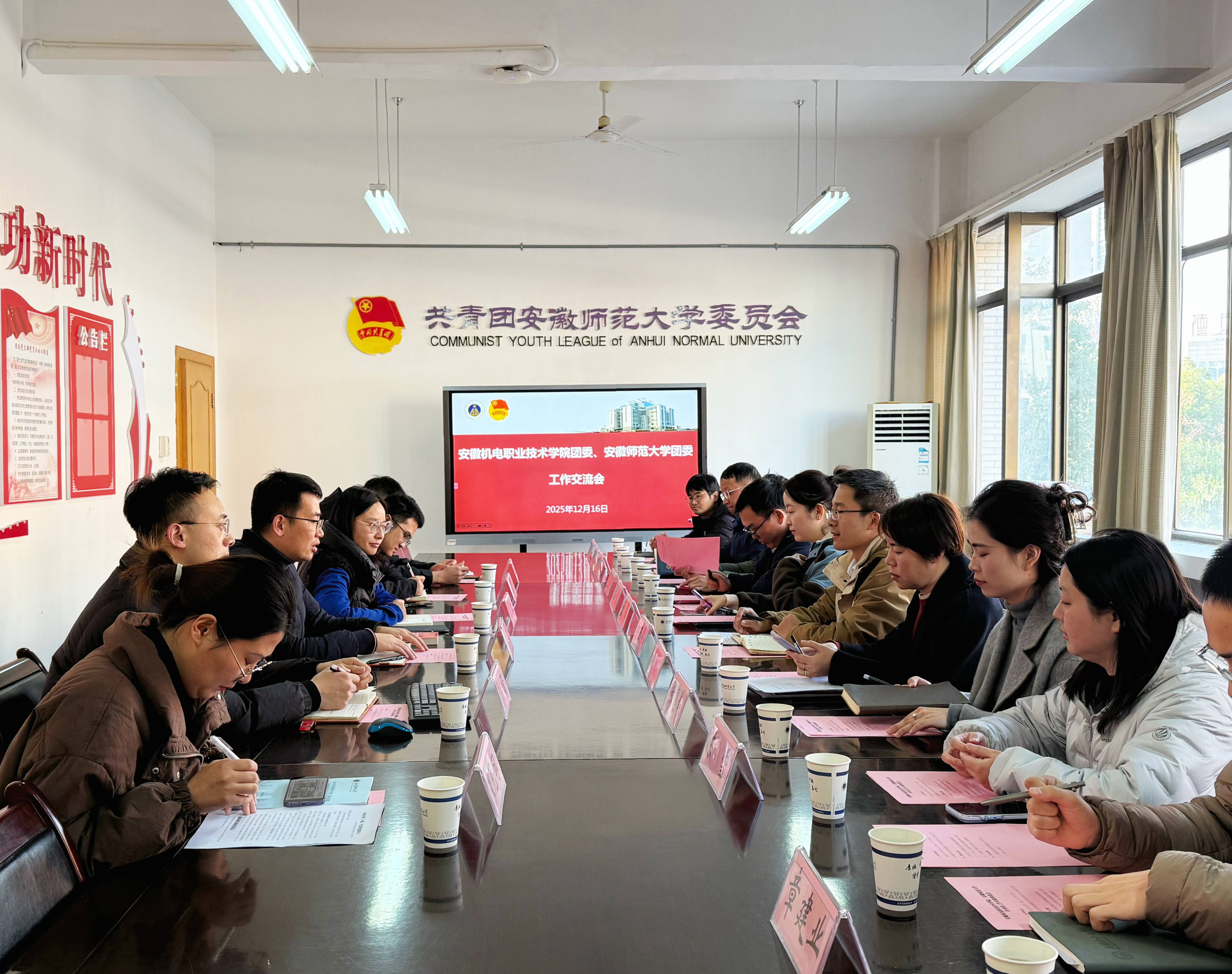 12月16日下午,安徽机电职业技术学院团委书记徐亚伟、马克思主义学院副院长段丽华一行来我校调研交流共青团工作。校团委书记陈骁、副书记张虹及相关科室、学院团委负责人参加了交流座谈。