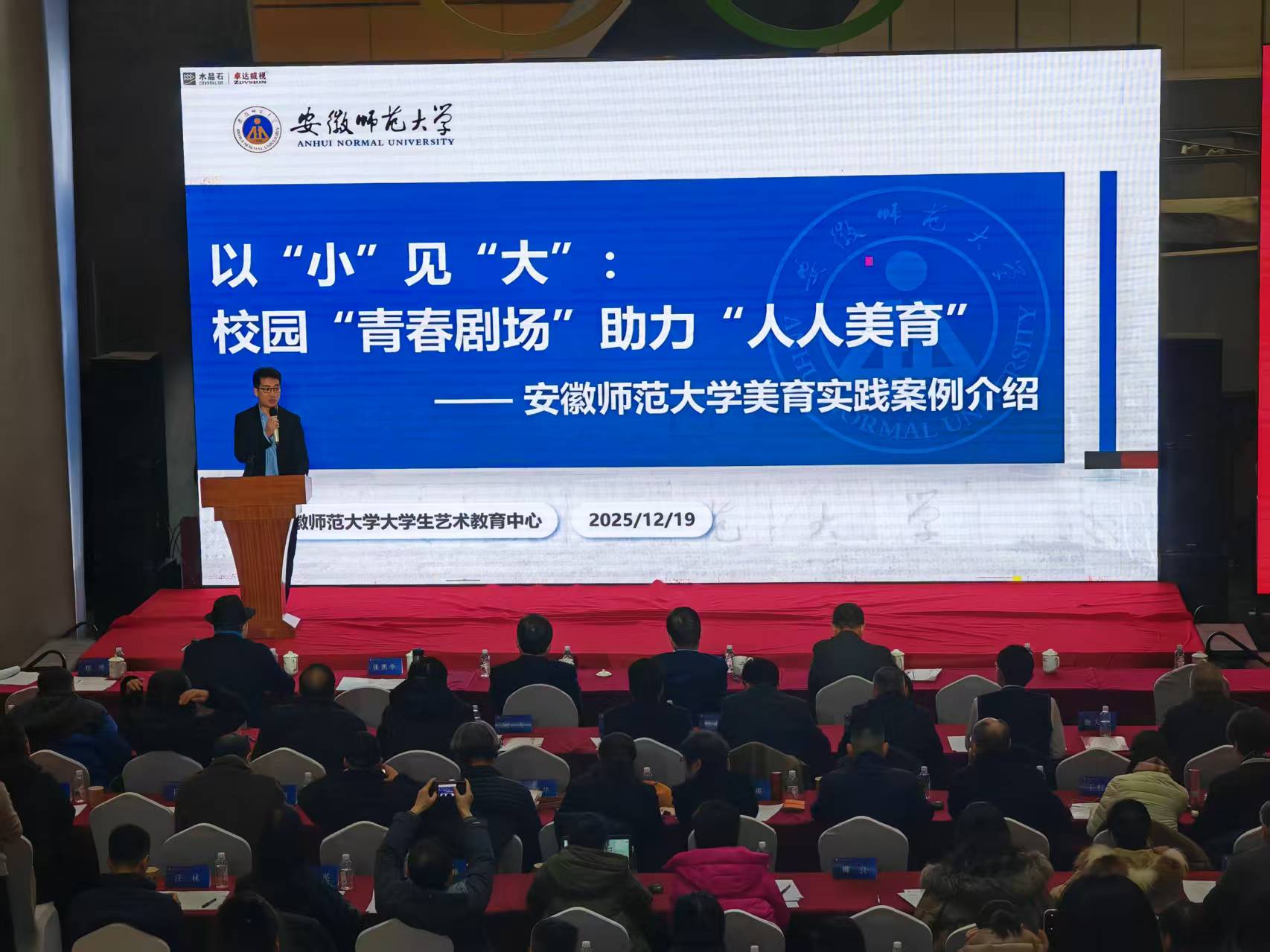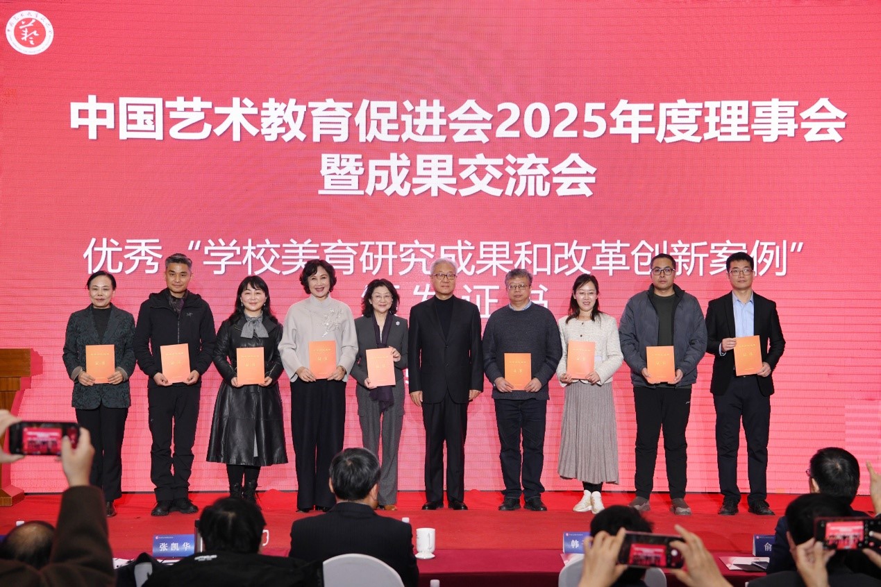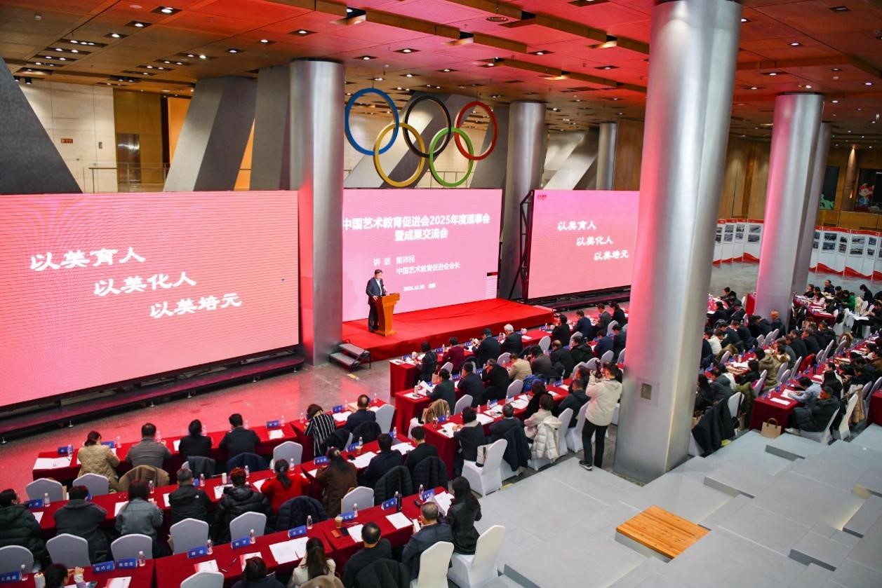 12月19日,中国艺术教育促进会2025年度理事会暨成果交流会在北京鸟巢文化中心召开。会议以“改革创新——促进中国式美育现代化发展”为主题,系统总结年度工作,谋划“十五五”时期美育发展蓝图。艺促会会长姜沛民,北京市政协党组成员、北京市文联主席、北京奥运城市发展促进会常务副会长韩子荣,艺促会副会长徐永胜、张凯华、俞锋等出席会议。艺促会驻会副会长万丽君主持会议。我校《以“小”见“大”,校园“青春剧场”护航青春成长路》案例入选2025年度优秀学校美育改革创新案例(全国50项),在会上接受表彰并入选大会发言。