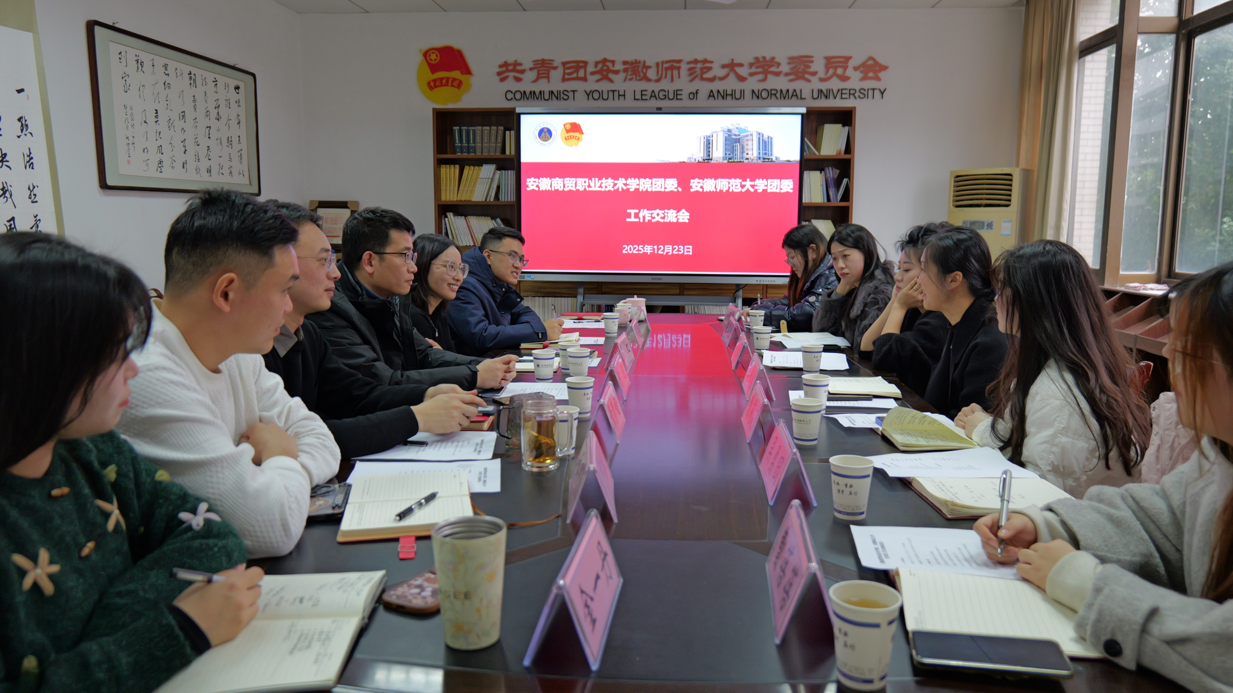 12月23日上午,安徽商贸职业技术学院团委负责人娄婧璇一行来我校调研交流共青团工作。校团委书记陈骁、副书记张虹及相关科室负责人参加了交流座谈。