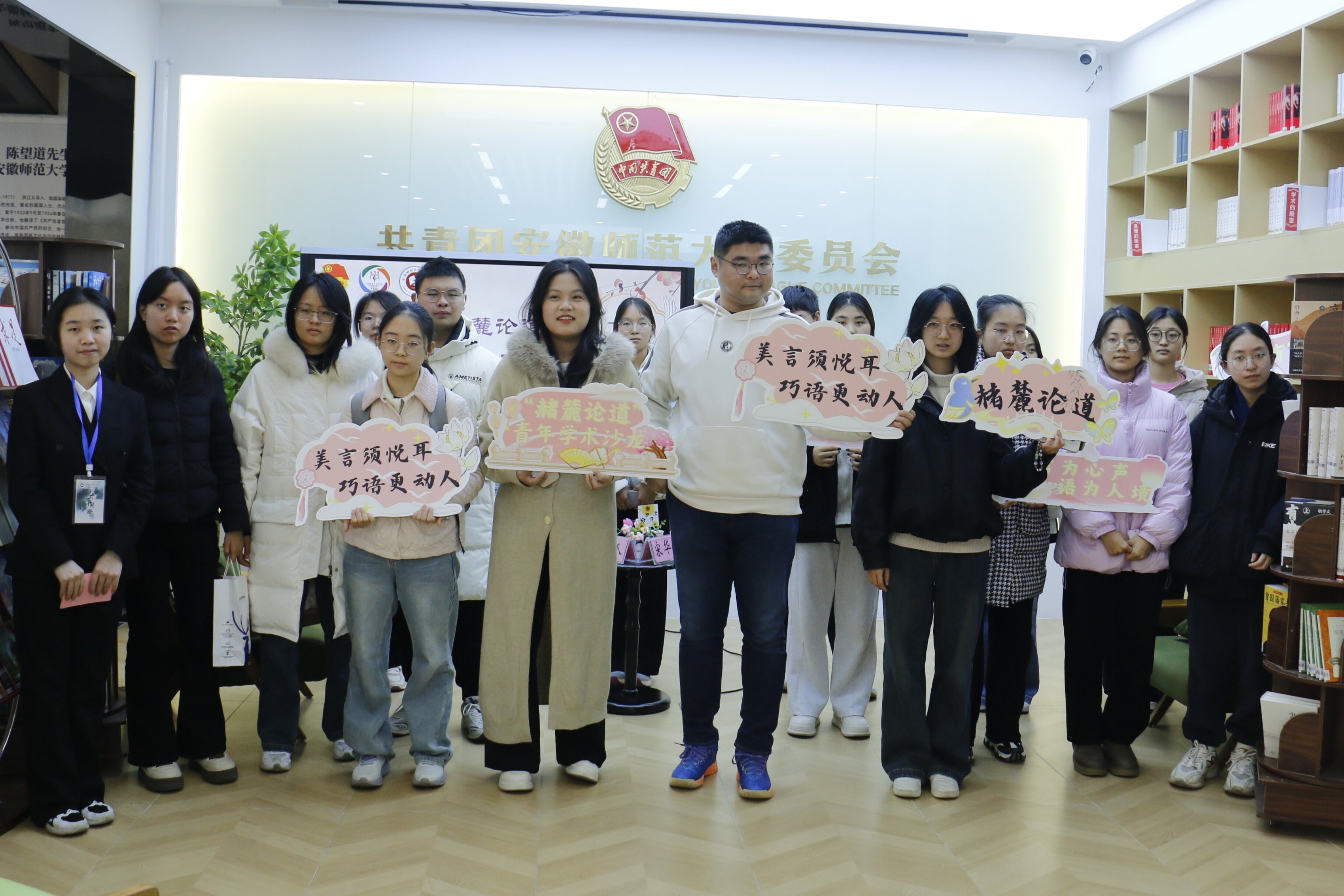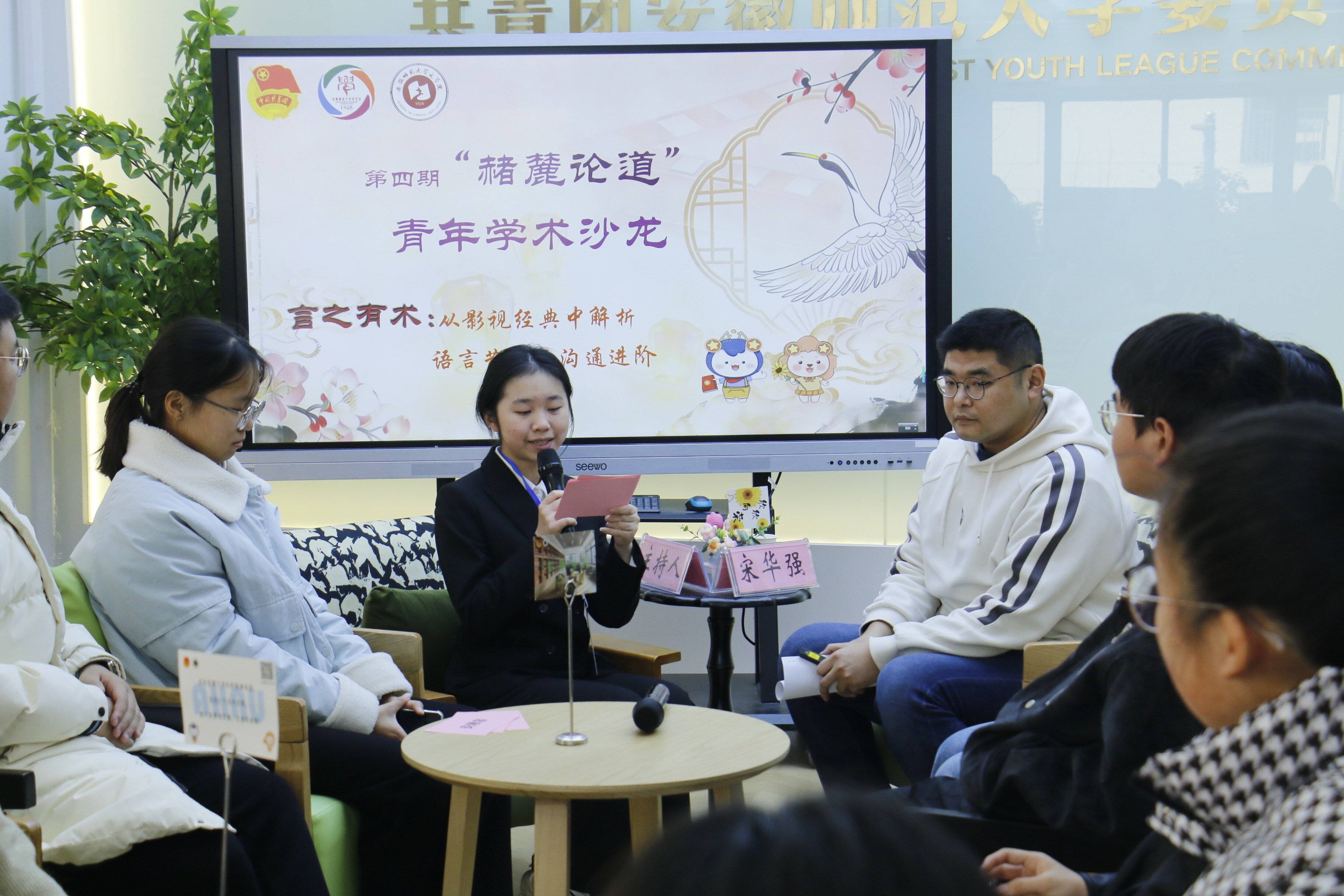 12月17日,由安徽师范大学学生会与安徽师范大学文学院学生会联合举办的第四期“赭麓论道”青年学术沙龙在花津校区大学生活动中心望道书屋顺利举行。本次活动以“言之有术:从经典影视中解析语言艺术与沟通进阶”为主题,邀请文学院宋华强老师担任主讲老师,与同学们进行一场语言艺术的交流。
