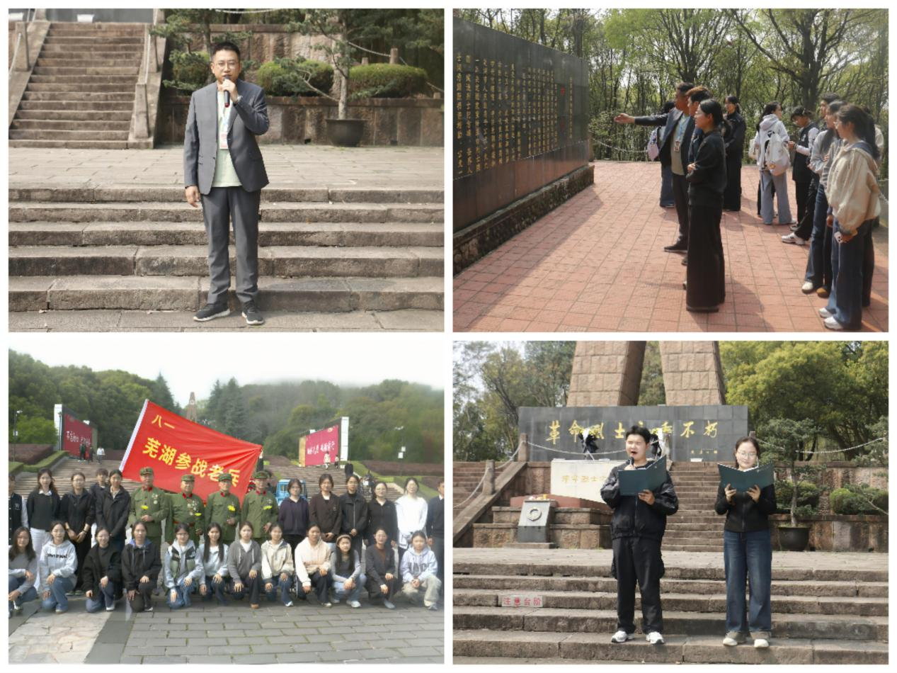 沉浸教育寻足迹,红色基因砺初心。各学院创新形式打造沉浸式红色教育,让“行走的思政课”走深走实。新闻与传播学院以“一封家书”为主题,在芜湖市烈士陵园开展实践教学;地理与旅游学院走进芜湖烈士纪念馆研学本地革命史,现场讲授专题微党课;教育科学学院、物理与电子信息学院通过英雄事迹观影、“跨越时空的对话”主题书信撰写、专题学习研讨等形式,引导青年学生以英烈为榜样,在新时代新征程中彰显青年担当。