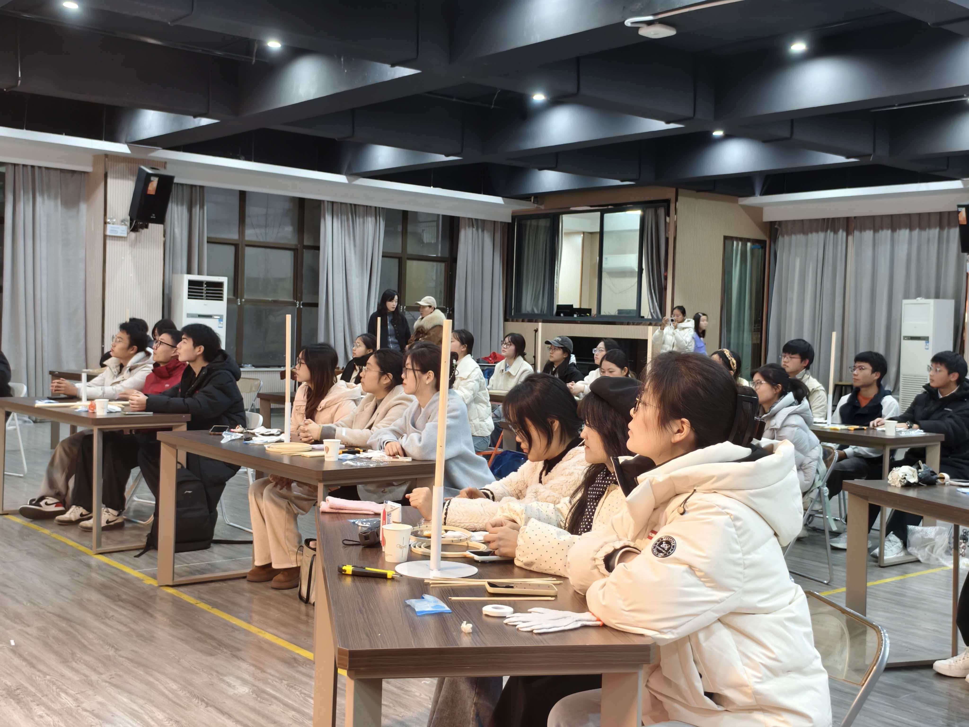 2025年12月12日晚,校学生会携手海星调查研究社打造“赭麓·青年夜校”无为鱼灯的舞动与传承活动,在花津校区大学生活动中心二楼团委多功能厅举办。海星调查研究社特邀国家级非物质文化遗产“无为鱼灯”代表性传承团队核心成员蒋章先生,为我们带来一场鱼灯制作体验课。