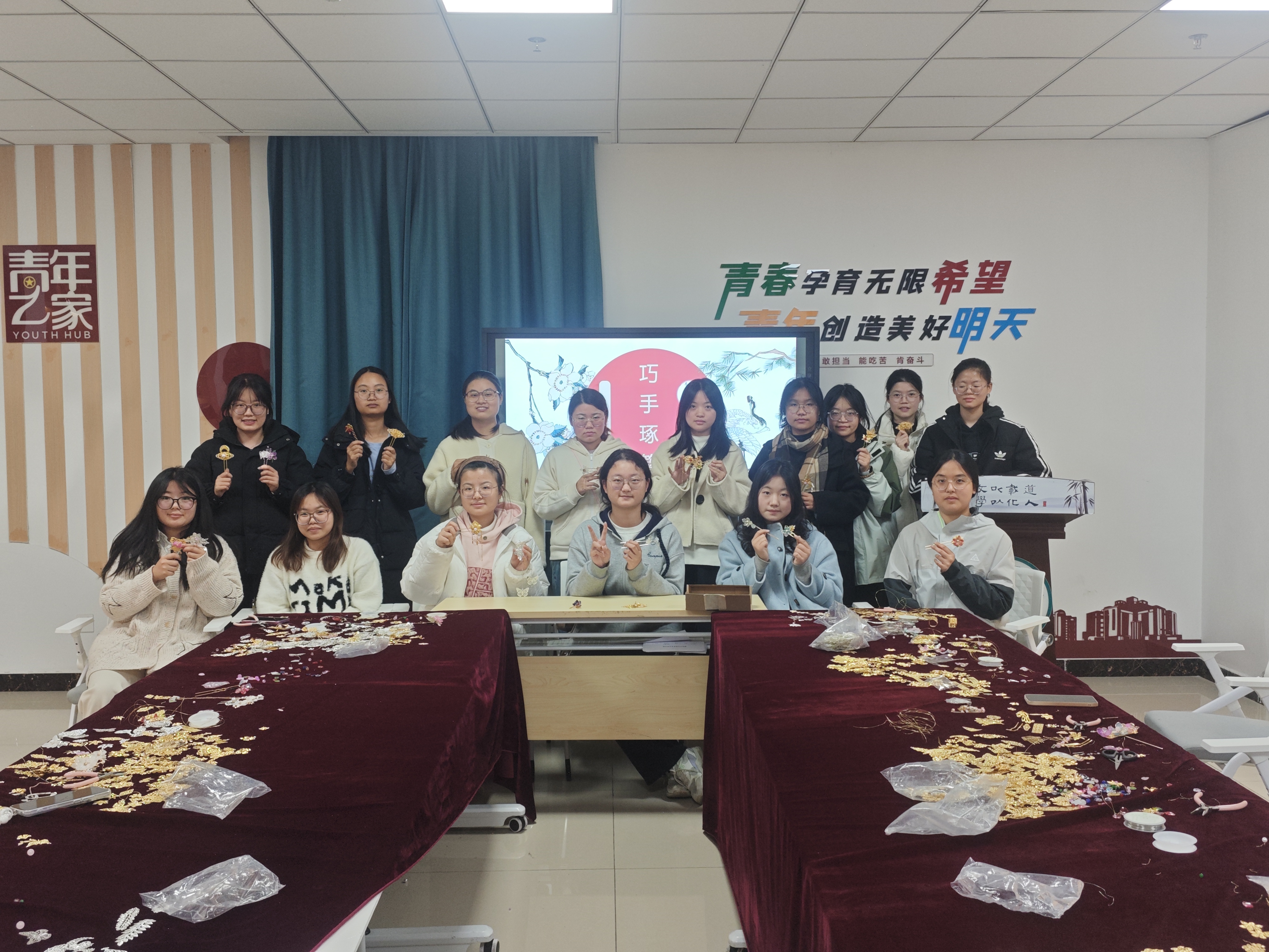 11月26日下午,安徽师范大学花津校区文典楼F113活动室暖意融融,汉语桥协会主办的"巧手琢簪"非遗发簪手工制作活动圆满举行。活动面向协会全体会员,以沉浸式手作体验为载体,传承非遗技艺、弘扬传统文化,让青年学子在指尖流转中感受中华美学魅力。