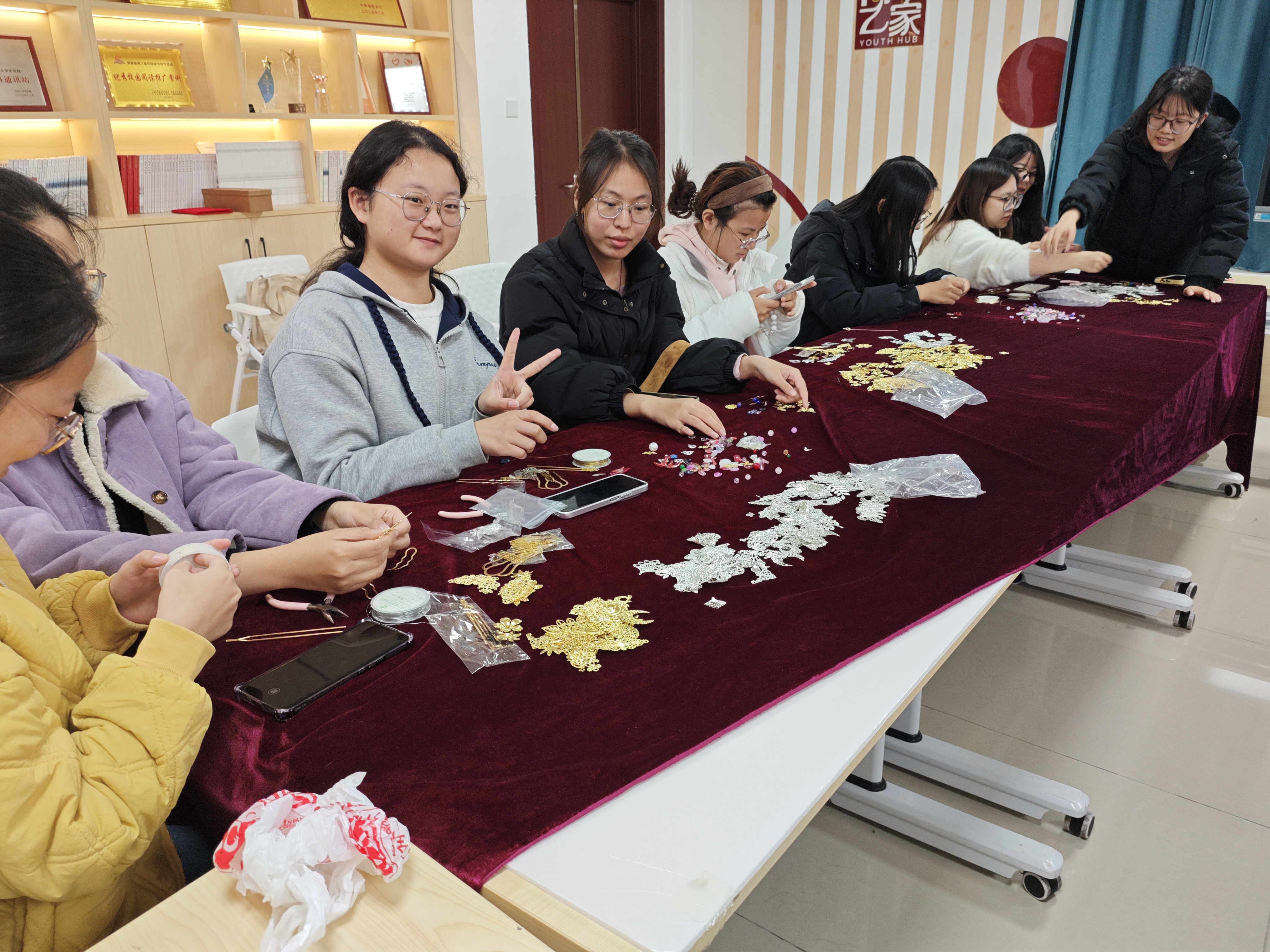 动手实践环节,会员们化身"手艺人",在理事们的巡回指导下潜心创作。大家精心挑选材料、设计造型,将零散部件逐步拼接成独具个性的发簪,穿珠引线间尽显巧思。专注温馨的氛围中,传统工艺与现代审美碰撞交融,每位参与者都在实践中体会到非遗技艺的精妙。