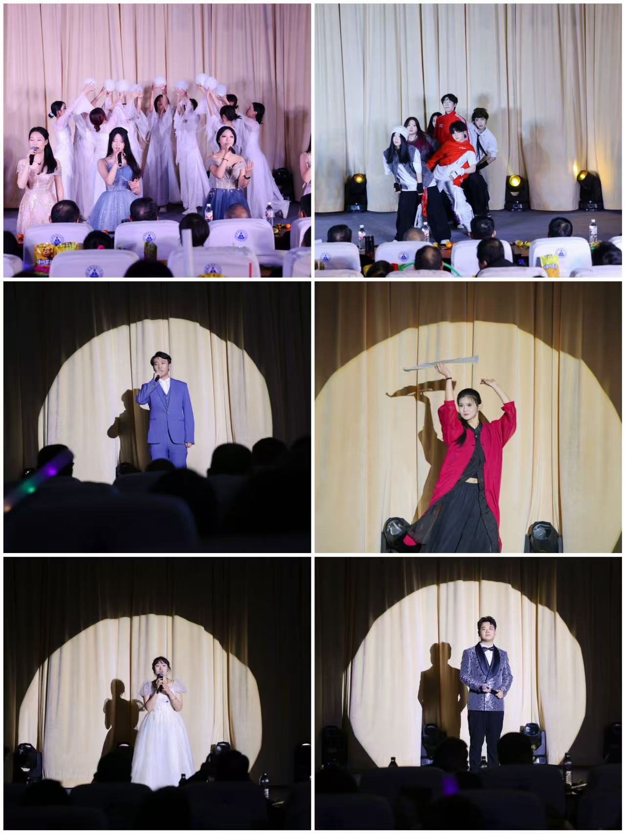第三篇章凝聚奋进力量,民谣《父亲的草原母亲的河》传递深沉家国眷恋,引发全场情感共鸣;热舞《OVERDRIVE》彰显青春活力,点燃现场氛围。歌伴舞《如愿》深情演绎追梦者的执着坚守,《明天会更好》大合唱凝聚师生对未来的美好期盼。最后,教工大合唱精彩亮相,展现教职工风采与凝聚力,为晚会画上圆满句号。