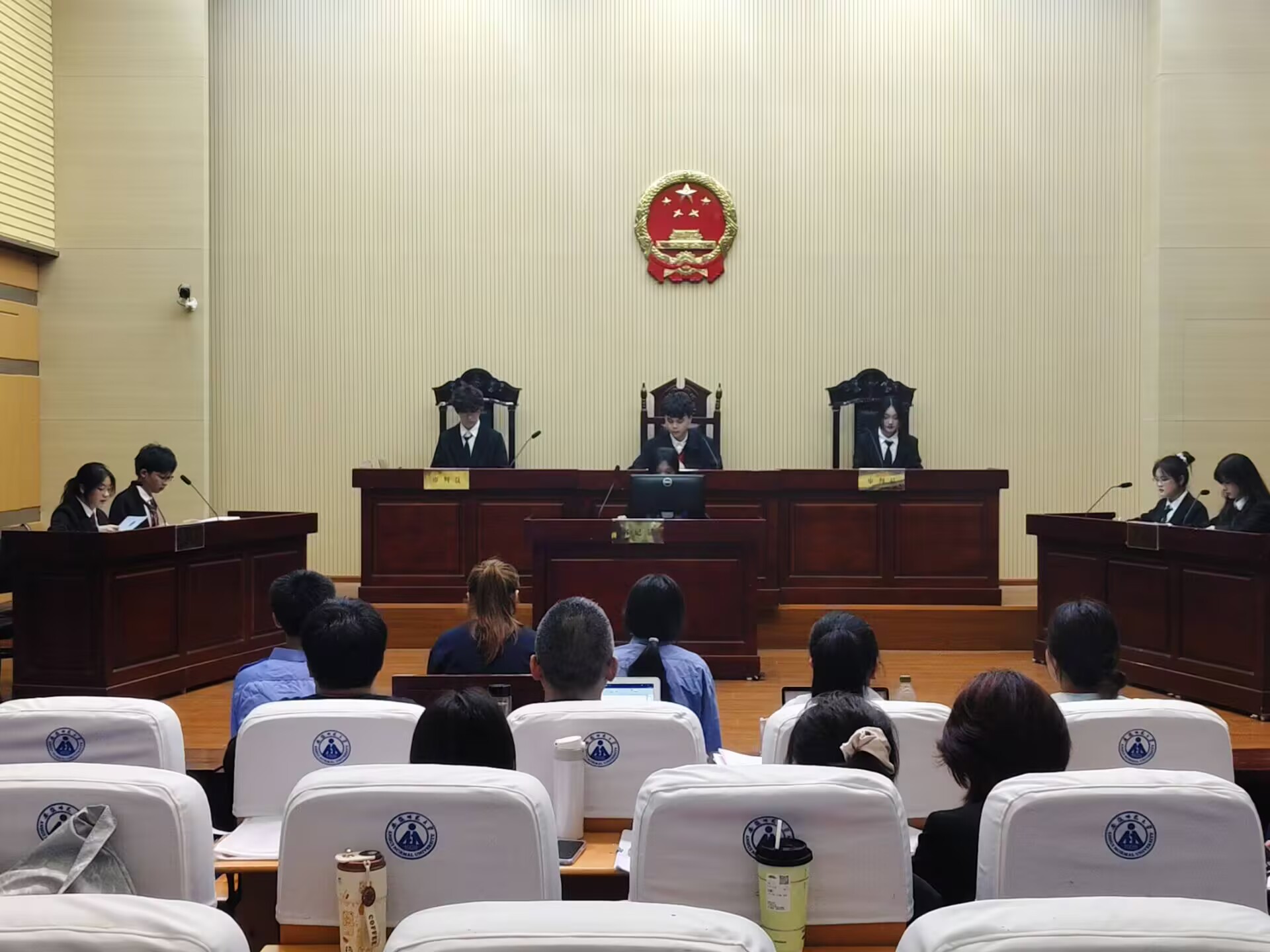 6月4日下午14时30分,青年法学社2025年度模拟法庭活动在庄严的模拟法庭报告厅拉开帷幕。法学院陆在春老师、胡悦老师受邀担任评委,共有4支代表队伍参赛。