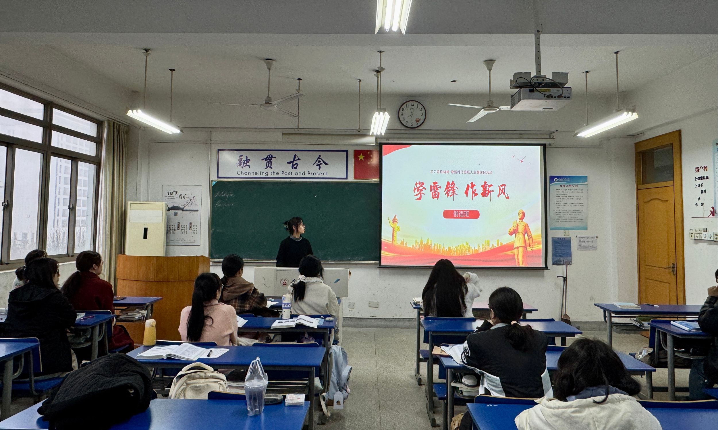 2024级英语(师范)6班团支部鼓励同学们积极参与“学雷锋,做先锋”团日活动,并将同学们当天的志愿活动照片在班集中展示,其中有的同学在校园内志愿捡垃圾,还有的同学在校园内帮忙摆放车辆,这些生活中切实的活动进一步引领着同学们增强青年团员意识。2024级俄语班团支部通过PPT在班级里进行了倾情的主题演讲,鼓励同学们学习雷锋精神,了解雷锋精神内涵,争做新一代“雷锋精神”传承者。2024级法语班团支部在同学们的一致意愿下向辅导员、老师送上了暖心的问候和美丽的鲜花,这一行动彰显了新时代青年美好的品德。2024级研究生团支部在学院老师和食堂经理的帮助下,成功申请到了足够的经费,并将买来的花朵赠送给了校园内辛勤劳作的工作人员们,温暖了每一个收到花朵的心。