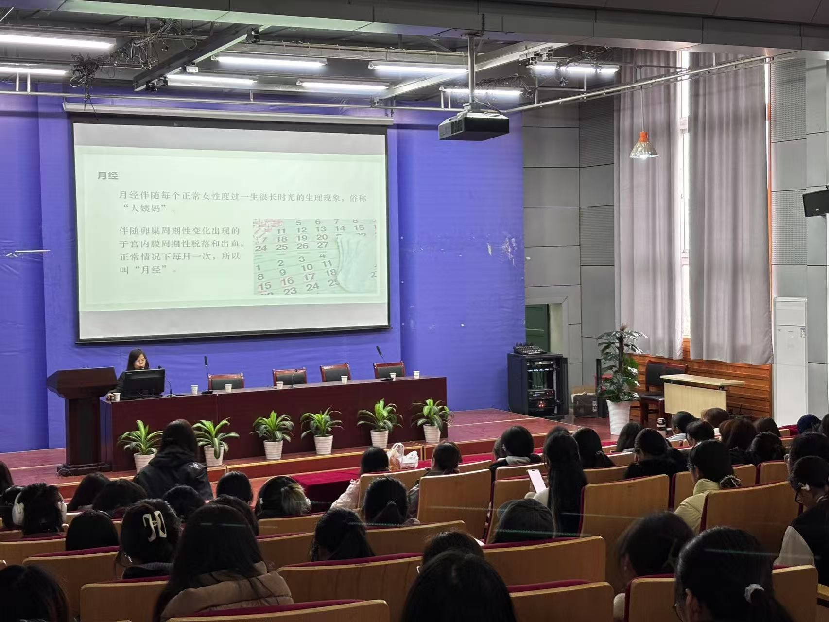 讲座前半程,余红主任围绕女性生理健康展开讲解,通过实例分析,深入浅出地阐述各类生理现象,帮助学生树立正确的生理观念,提升自我呵护与风险防范能力。在心理健康环节,余红主任以风趣又温暖的语言剖析常见心理问题,并给出针对性建议与应对策略,引导学生关注内心世界,积极面对成长挑战。