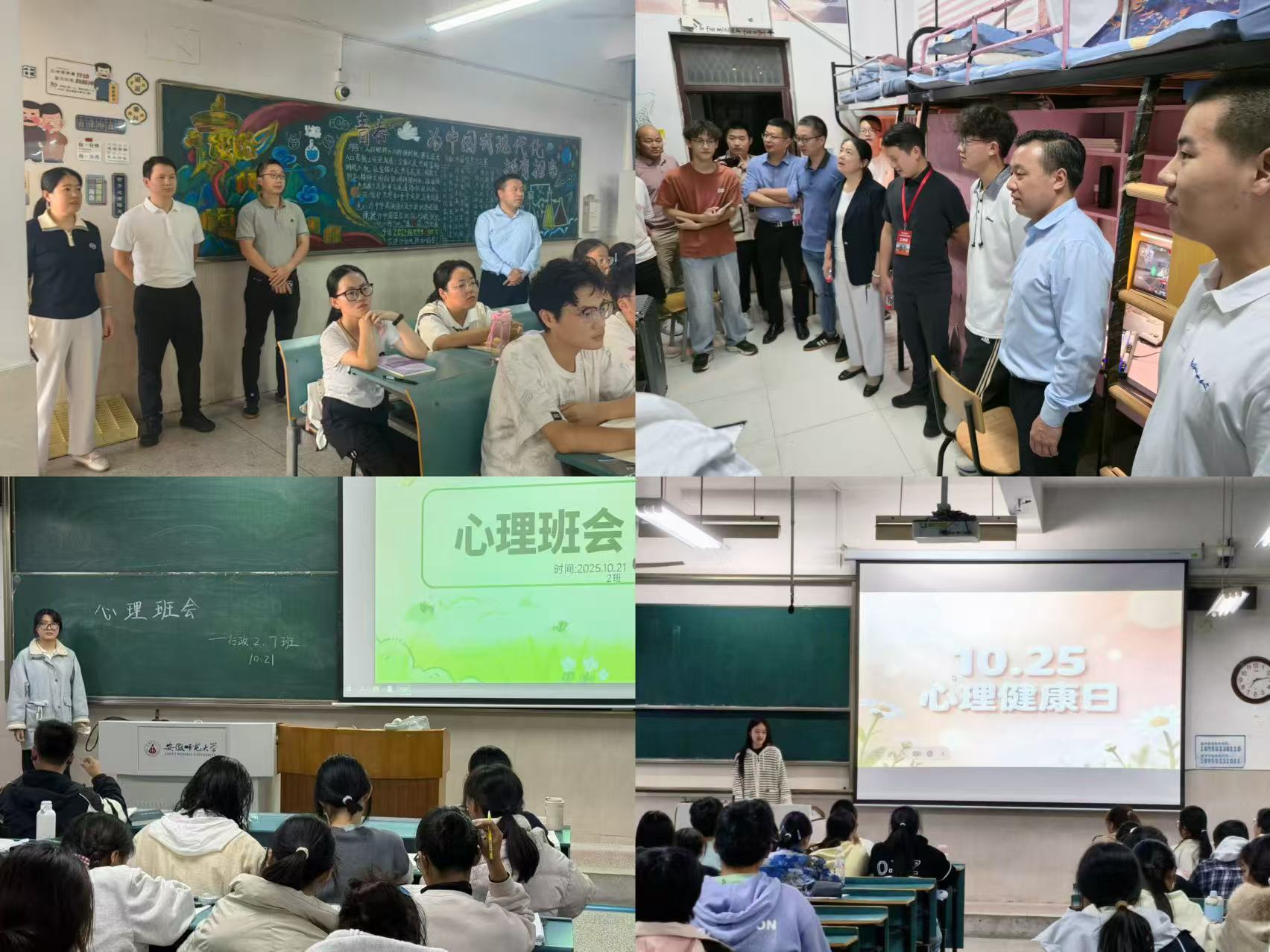 聚焦需求,守护心灵。为打破学生对心理健康问题的认知误区,让“关注心理”成为校园共识,引导学生正确认识心理健康的重要性,掌握基础的心理调适方法,各班级成功举办了以“关爱心灵,赋能成长”为主题的班会。各班级结合学生实际情况,用心设计,从专业角度为同学们解答关于学习、成长、生活等方面的疑惑。院领导深入学生课堂、宿舍,了解学生需求,并以班级为单位,充分发挥辅导员、心理委员和寝室长的作用,通过一对一、一对多等多样形式开展学生心理健康状况排查工作,并与同学们展开深入交流,对有需要帮助的同学给予帮助与鼓励。