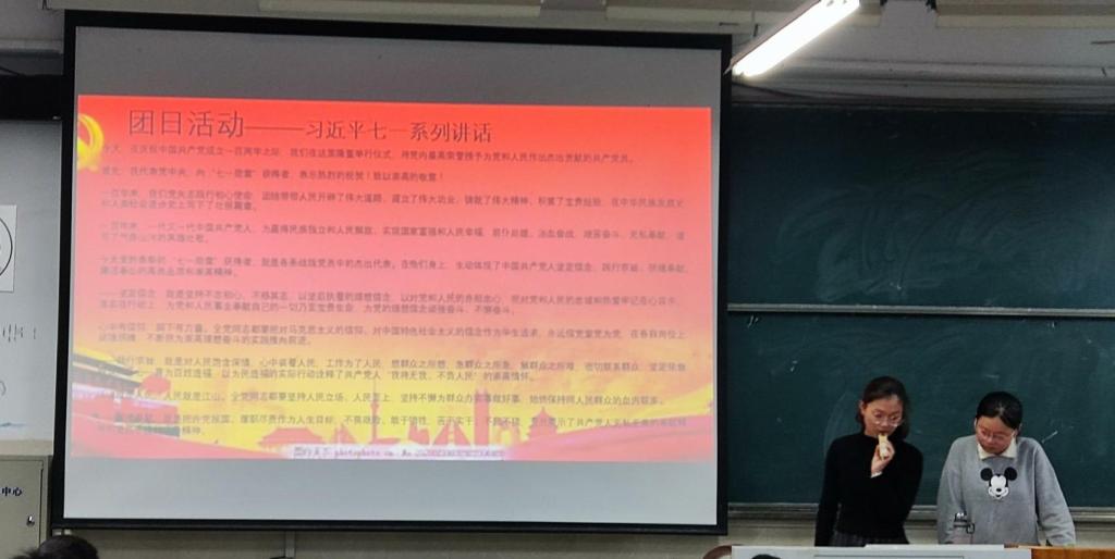 请党放心,强国有我。为加强团情学习,肩负青春使命,学院新生团支部深入学习习近平总书记“七一“重要讲话精神,开展多项主题团日活动。各班级组织收看习近平总书记在“七一”重要讲话精神视频,牢记总书记寄语青年“增强做中国人的志气、骨气、底气”的嘱托;各班级还组织同学观看爱国影片、撰写观影感悟;2021级新生自发组织成志愿队伍,前往礼勤楼进行卫生打扫,将理论与实践相结合,体现自身责任感。