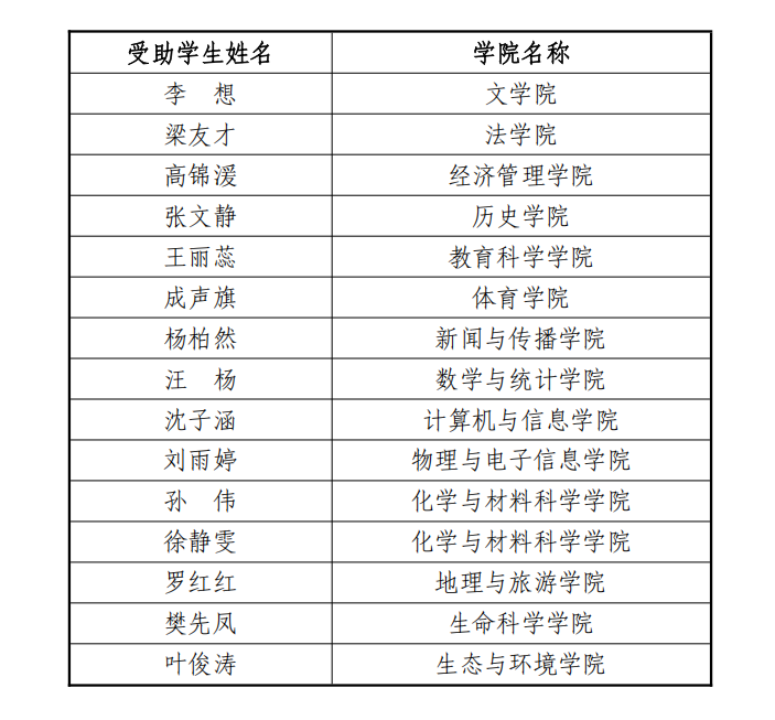 根据《“希望工程·国之栋梁”助学金资助管理规则》,经学生本人申请、学院推荐、资格审查、评审小组集中评议等程序,安徽师范大学2025年度“希望工程·国之栋梁”助学金评审工作已完成。现将拟推报人员名单予以公示: