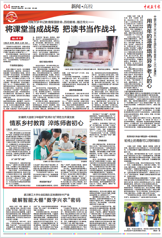 安徽师大教务处副处长李汪根介绍,学校正在积极推进基础教育振兴行动计划,已把支教等社会实践纳入“优师计划”培养模块并不断完善,目的是坚定师范生从教信念,完善卓越教师培养体系,打造一支“下得去、留得住、教得好”的高素质未来教师队伍。