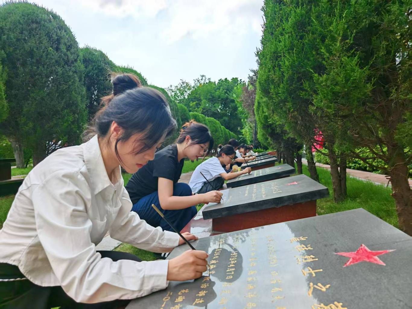 9月17日,安徽师范大学“红色青春守护人”工作室50余名师生志愿者,为芜湖市烈士陵园先烈墓碑碑文“描金”,给英雄事迹“上色”,是铭记,更是传承。