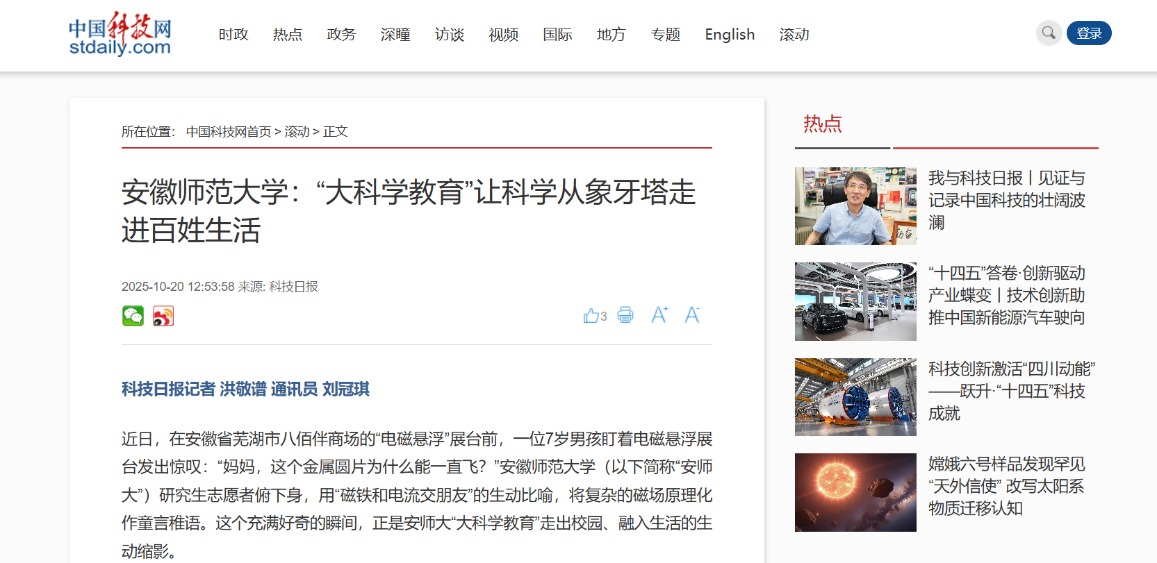 【中国科技网】安徽师范大学:“大科学教育”让科学从象牙塔走进百姓生活