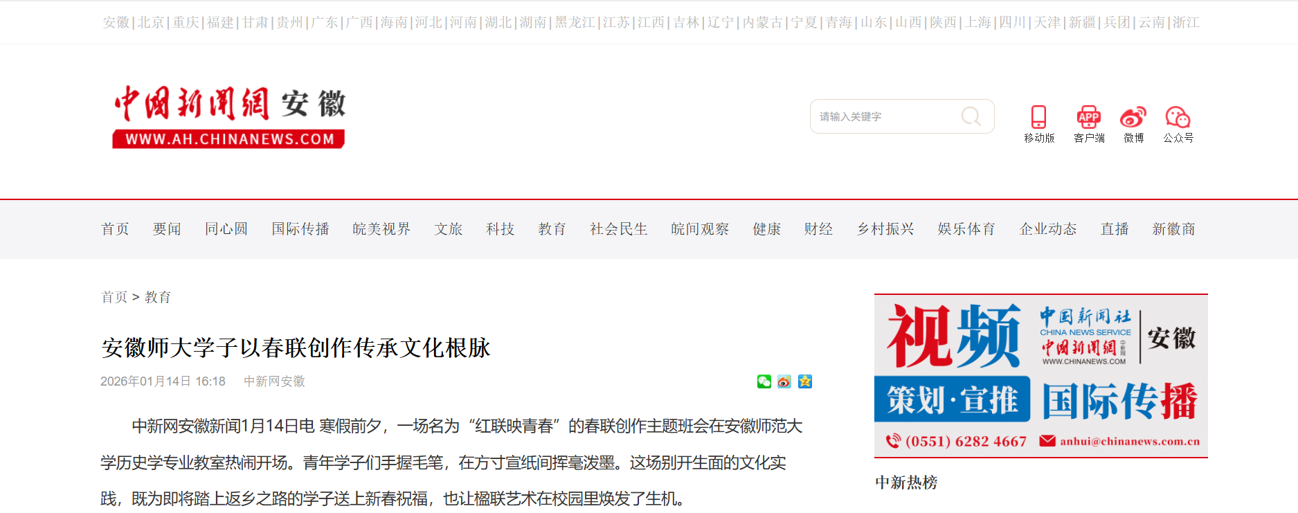 原报道阅读链接:【中国新闻网】https://www.ah.chinanews.com.cn/news/2026/0114/338718.shtml
