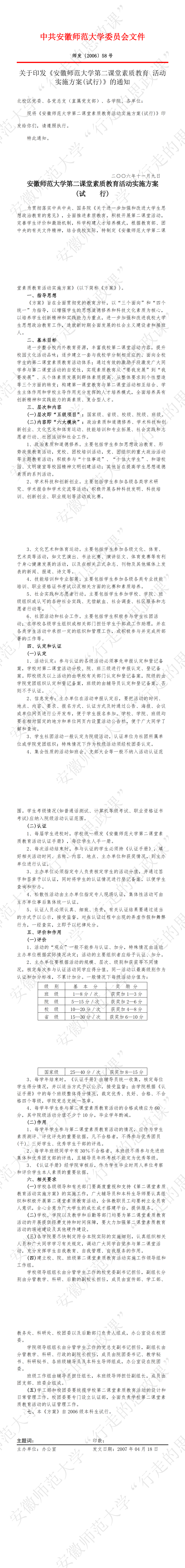 关于印发《安徽师范大学第二课堂素质教育活动实施方案(试行)》的通知