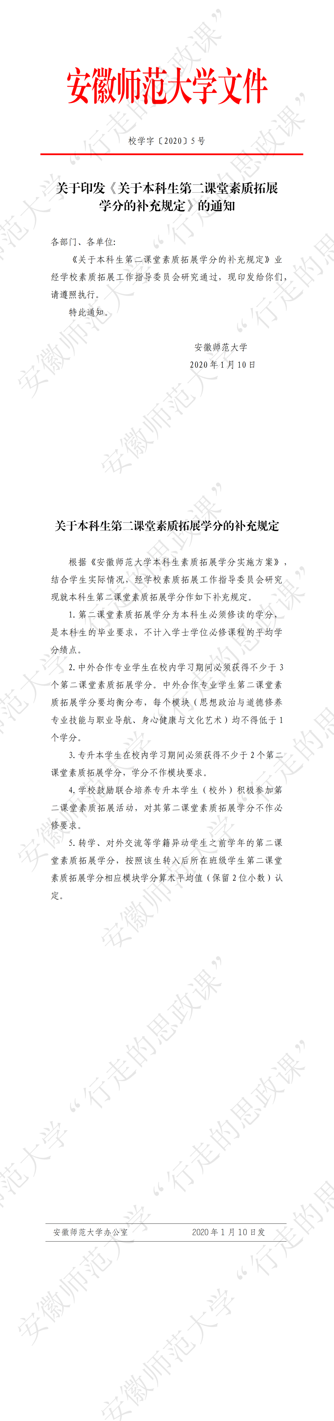关于印发《关于本科生第二课堂素质拓展学分的补充规定》的通知