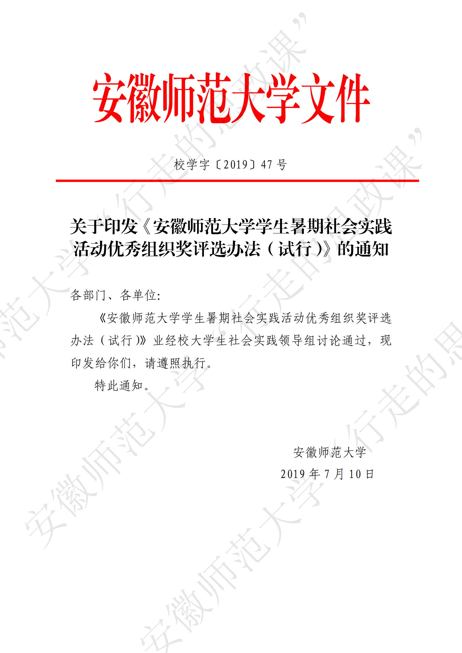 关于印发《安徽师范大学学生暑期社会实践活动优秀组织奖评选办法(试行)》的通知