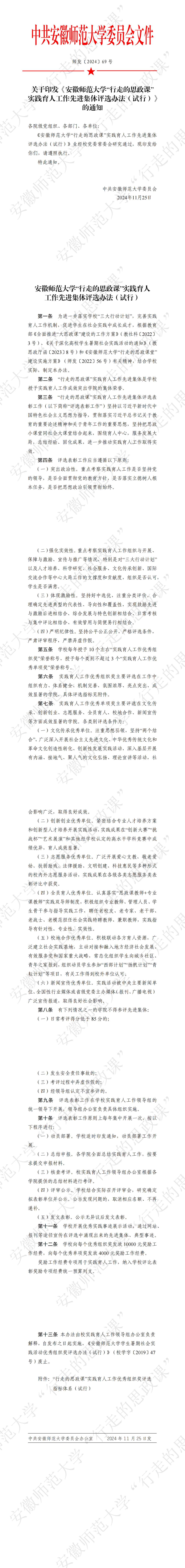 关于印发《安徽师范大学“行走的思政课”实践育人工作先进集体评选办法(试行)》的通知