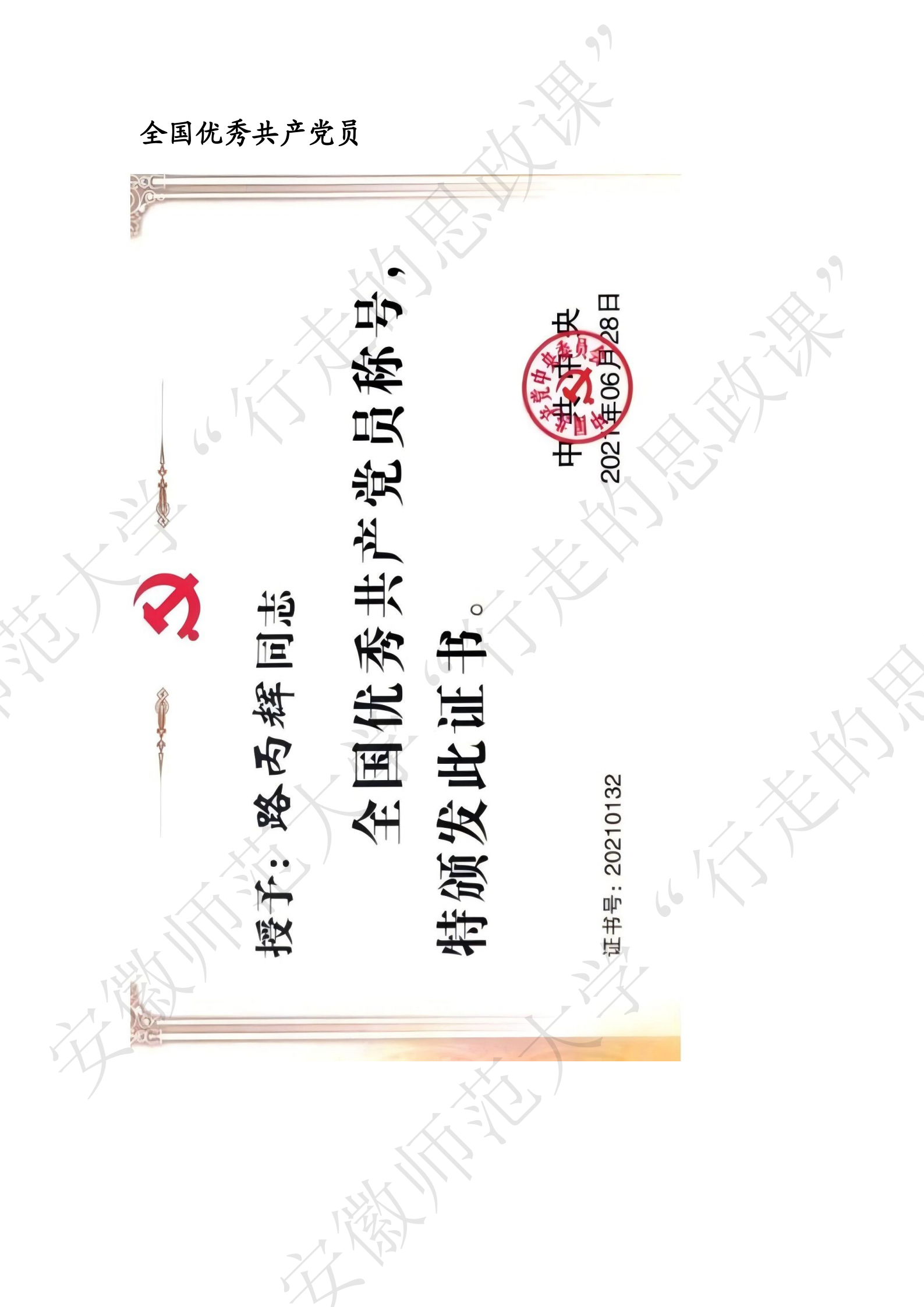 我校路丙辉教授被中共中央授予全国优秀共产党员称号