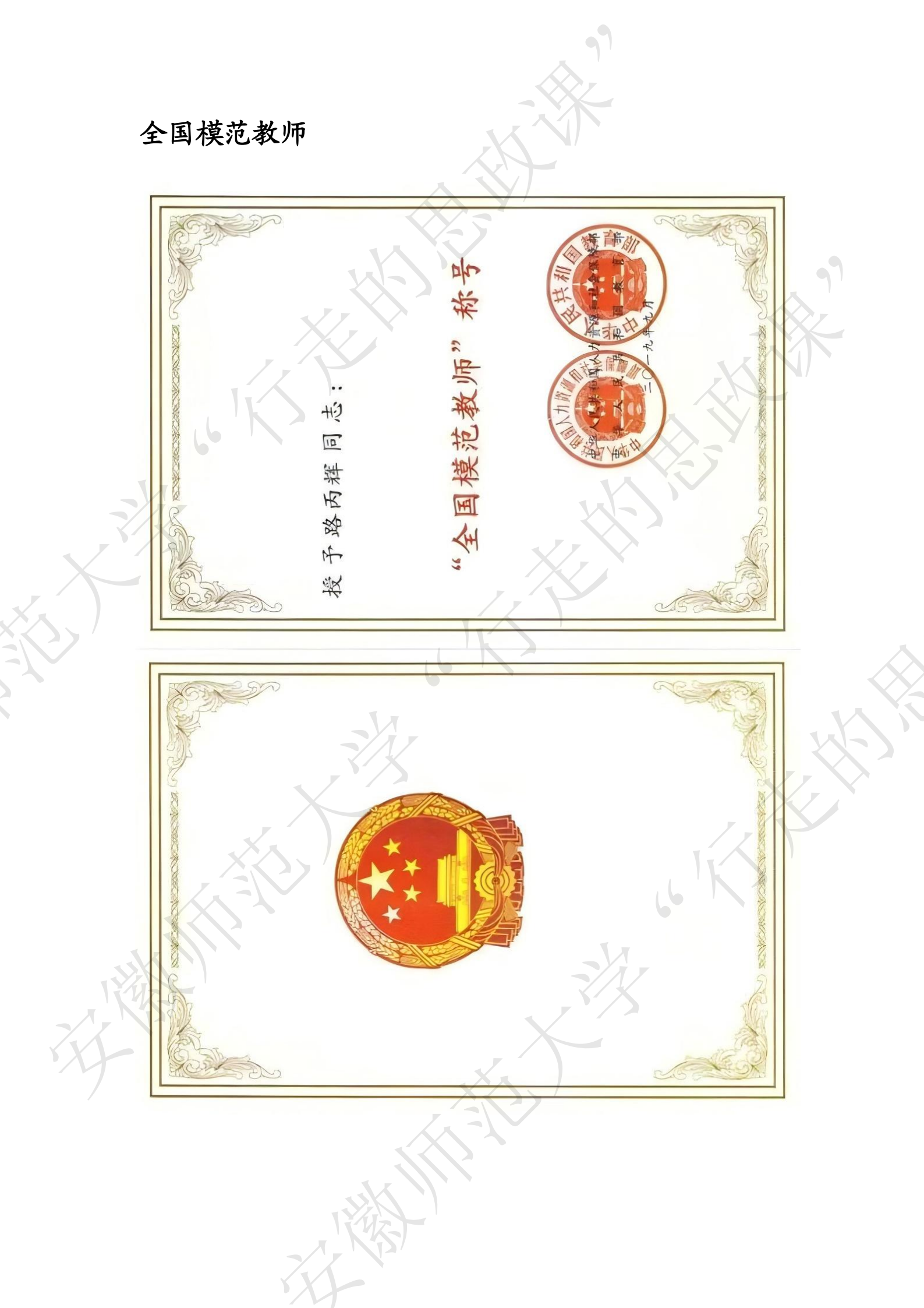 我校路丙辉教授被人社部、教育部授予“全国模范教师”称号