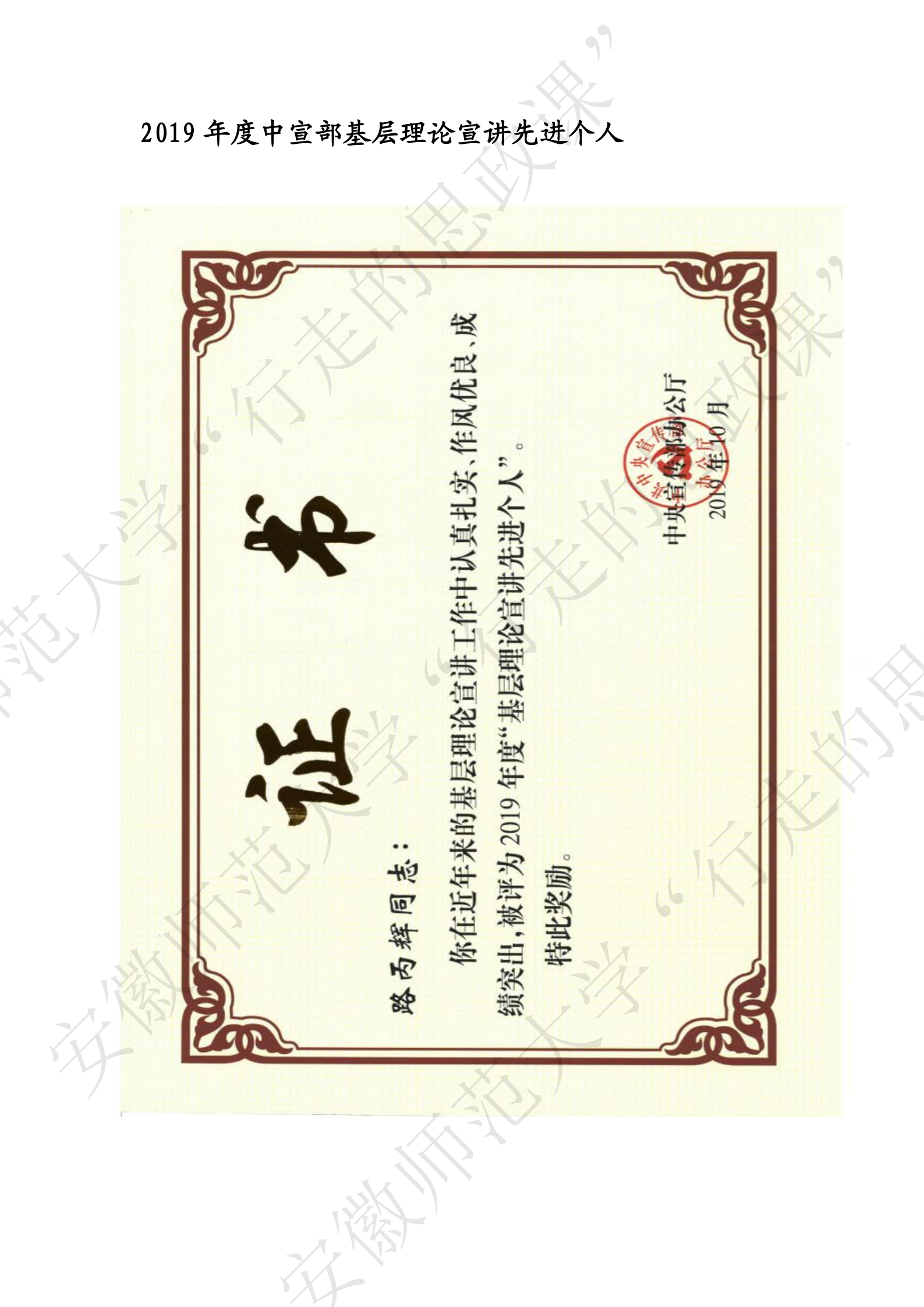 我校路丙辉教授被中宣部办公厅评为2019年度“基层理论宣讲先进个人”