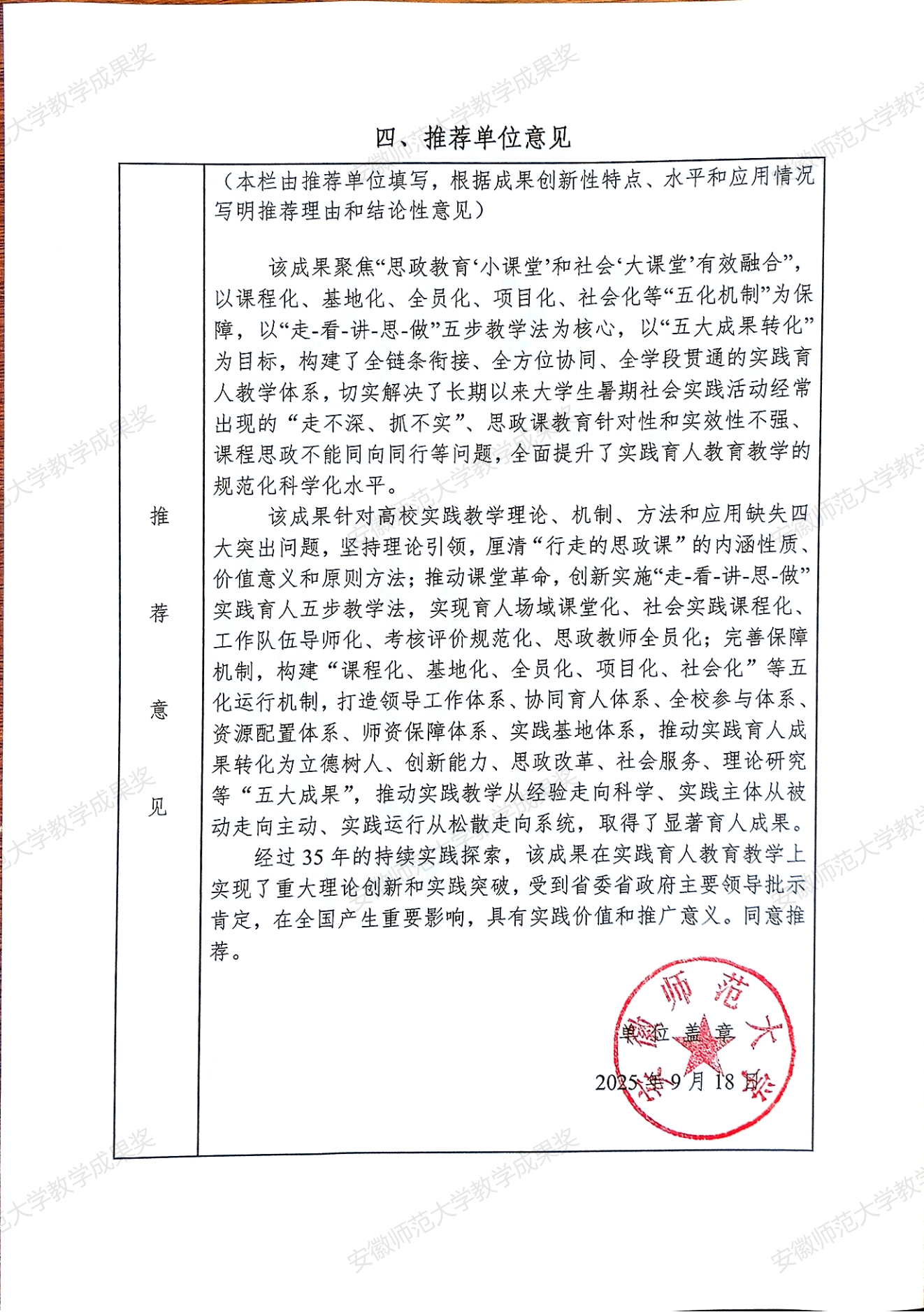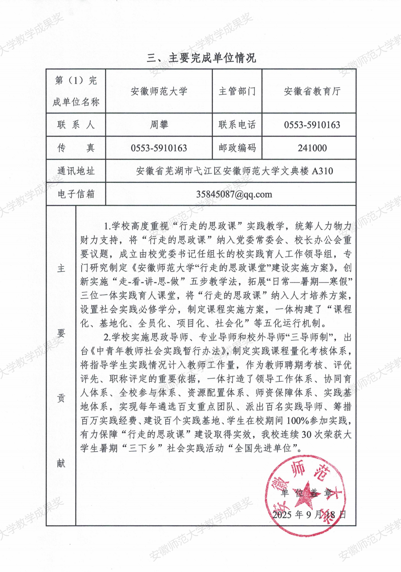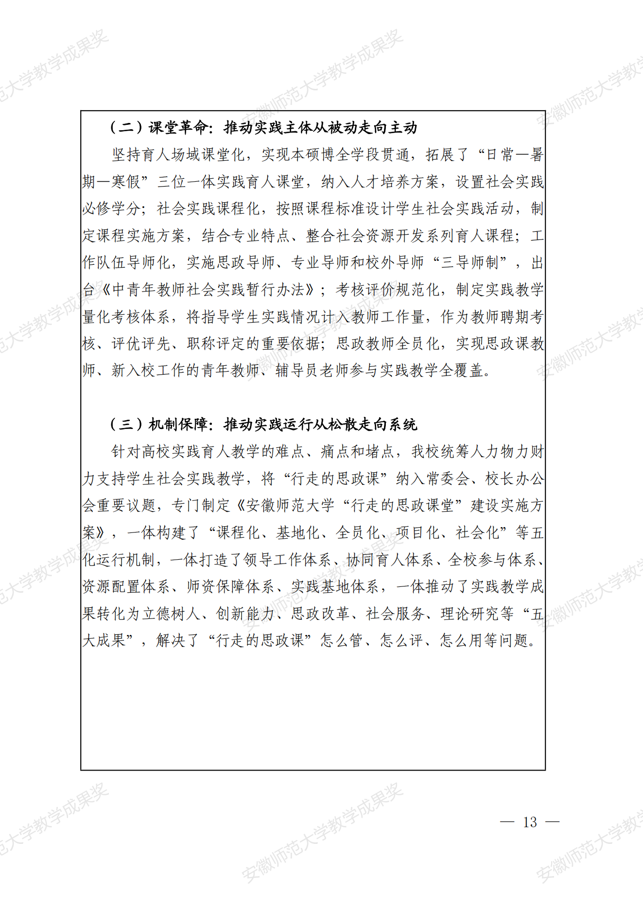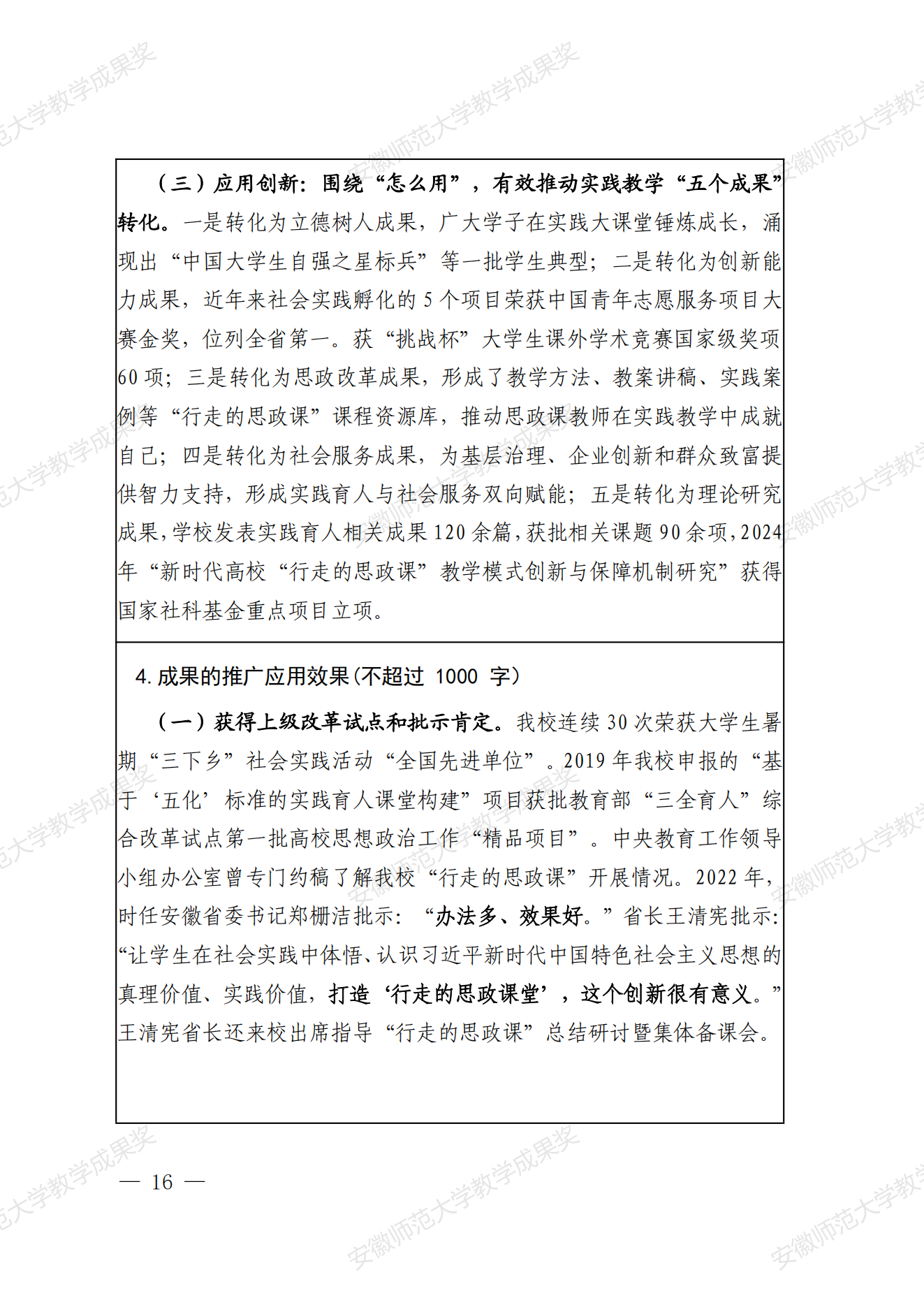 行走的思政课:新时代高校实践育人模式建构与创新 教学成果奖申报书