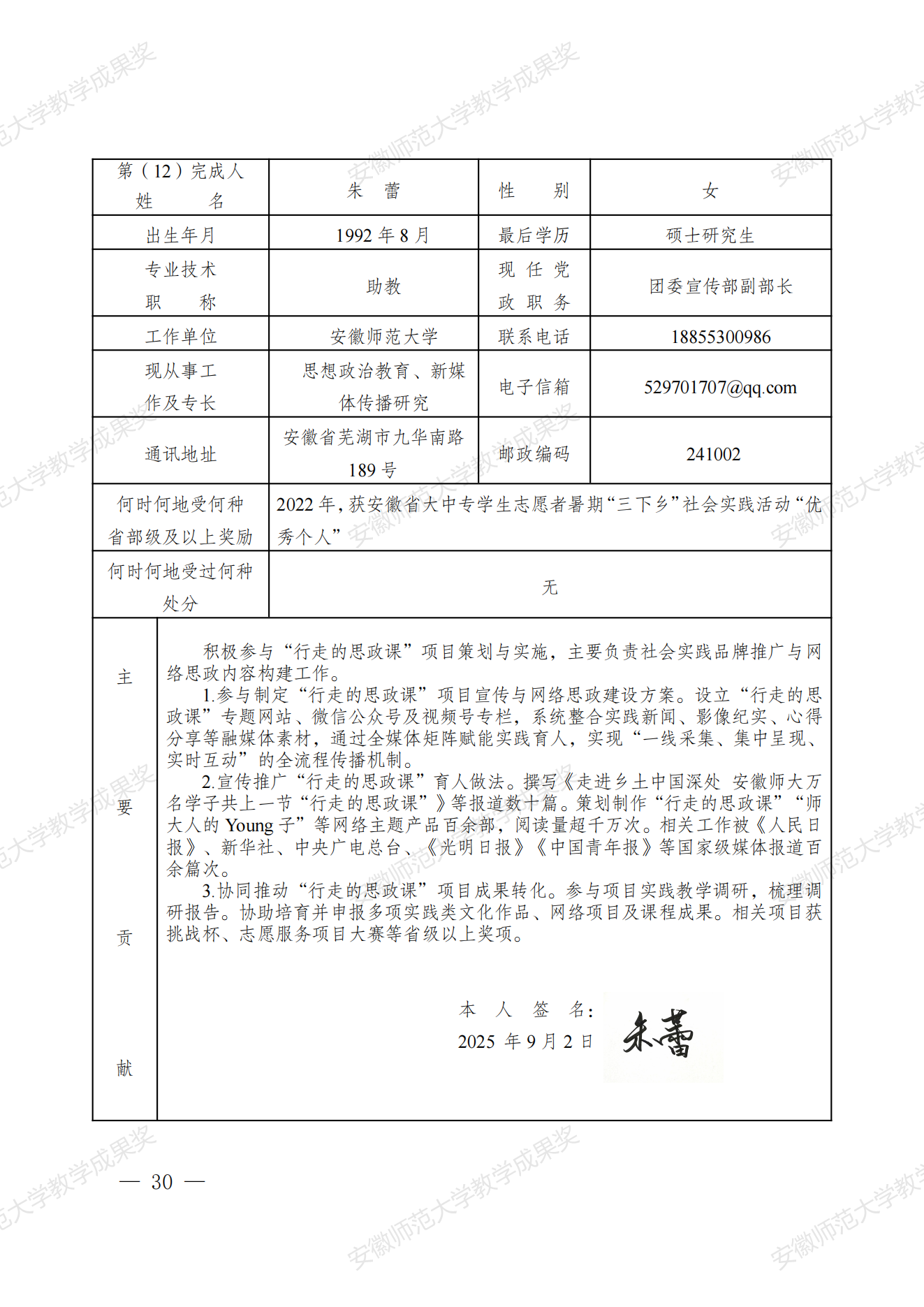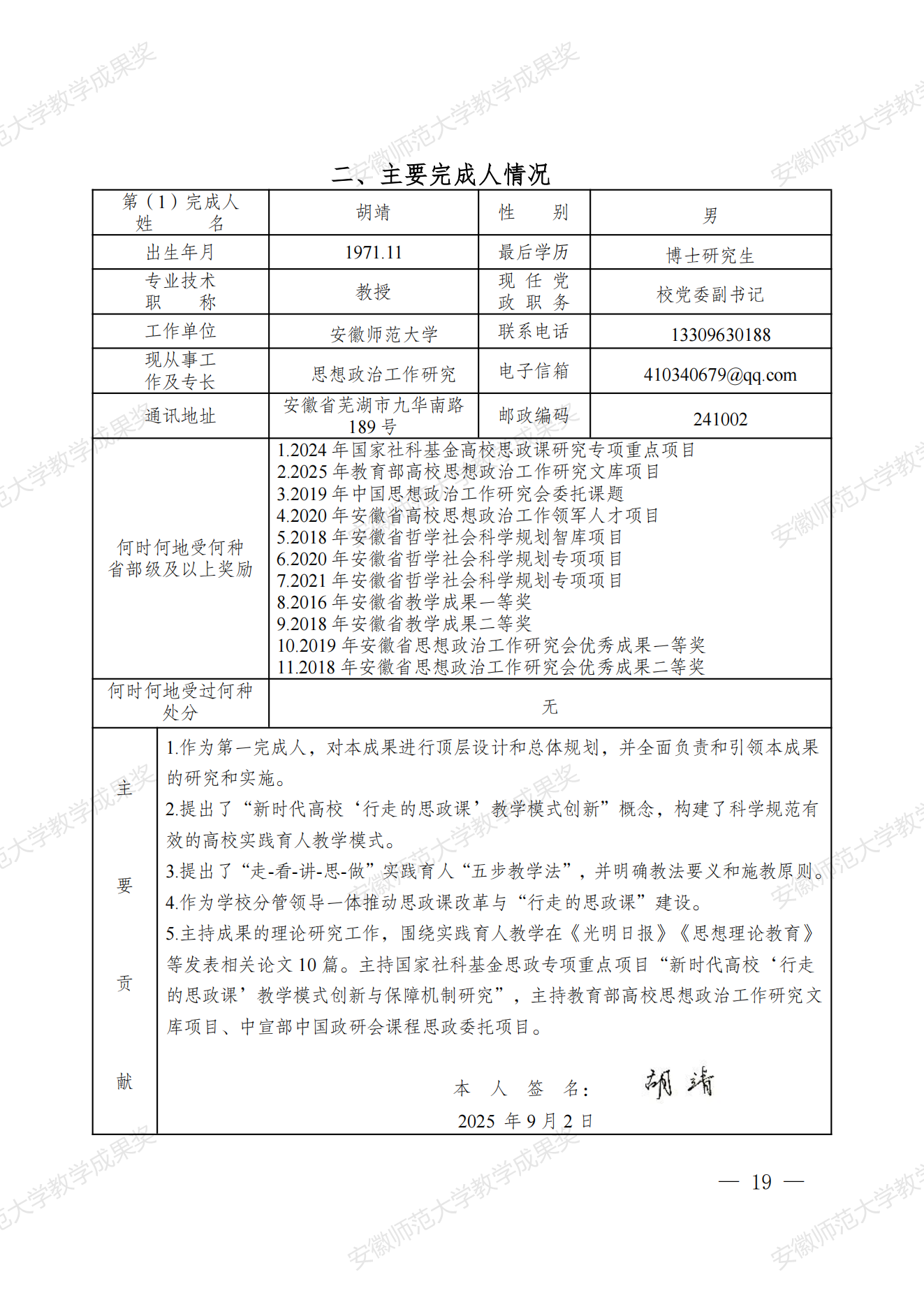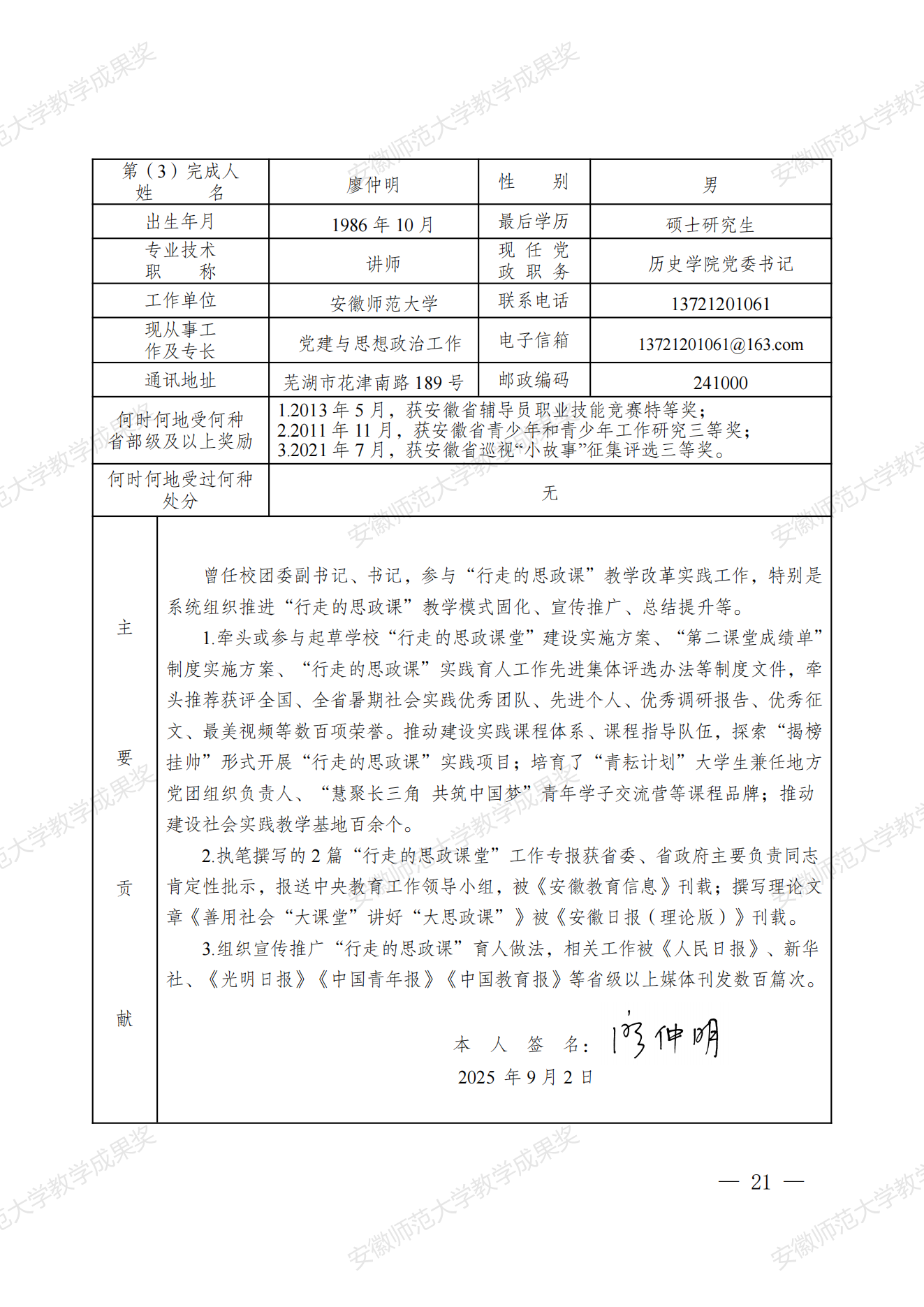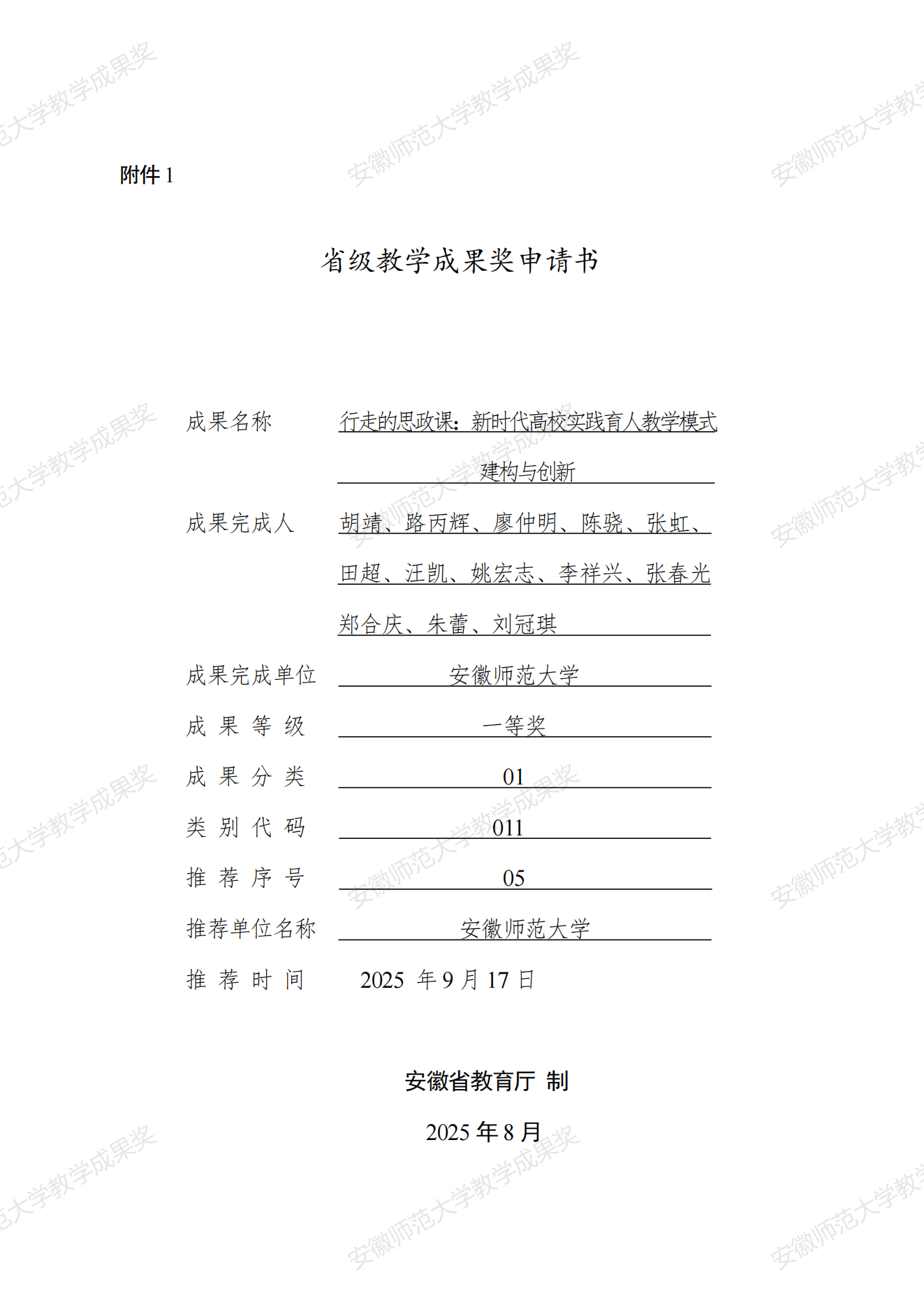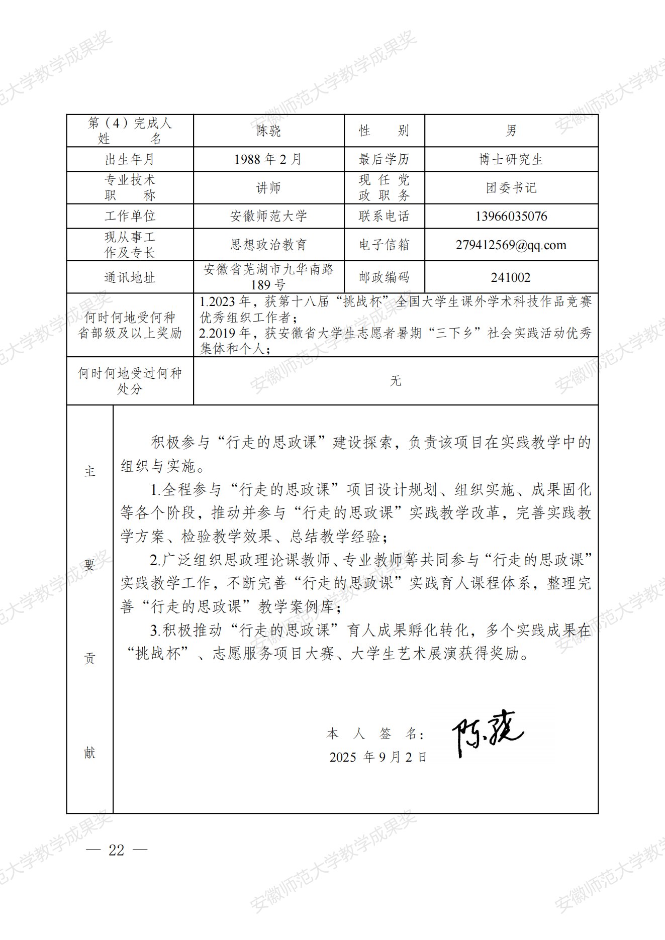 行走的思政课:新时代高校实践育人模式建构与创新 教学成果奖申报书