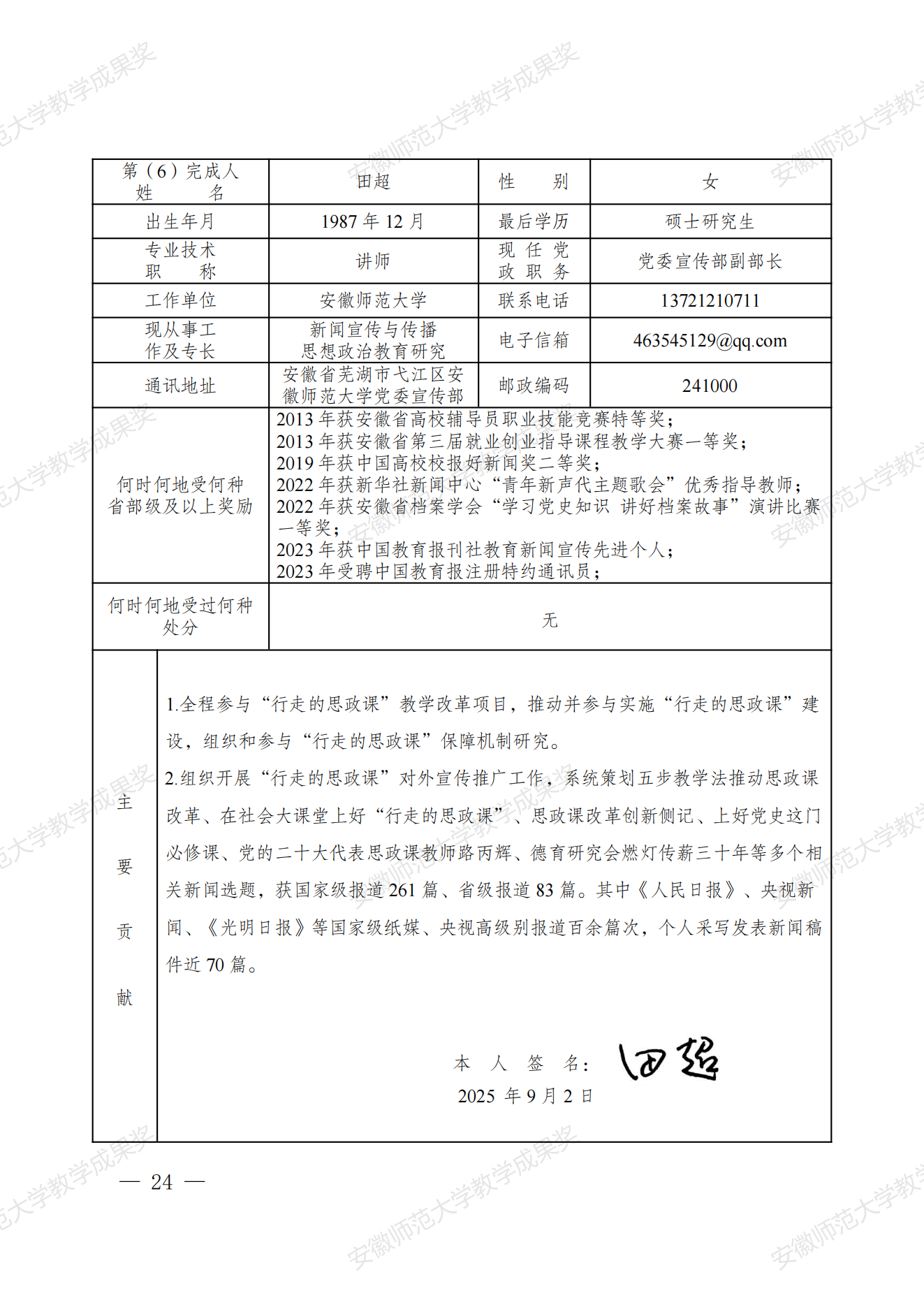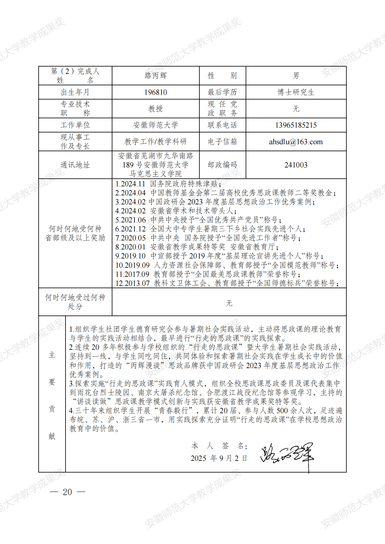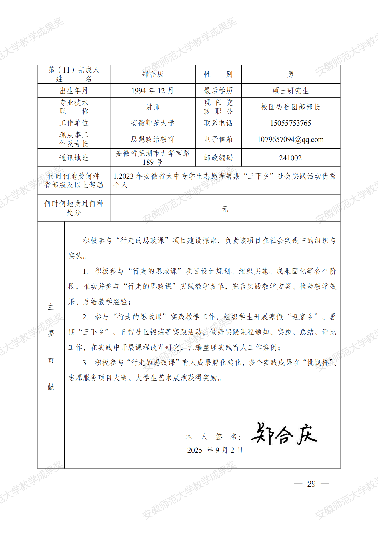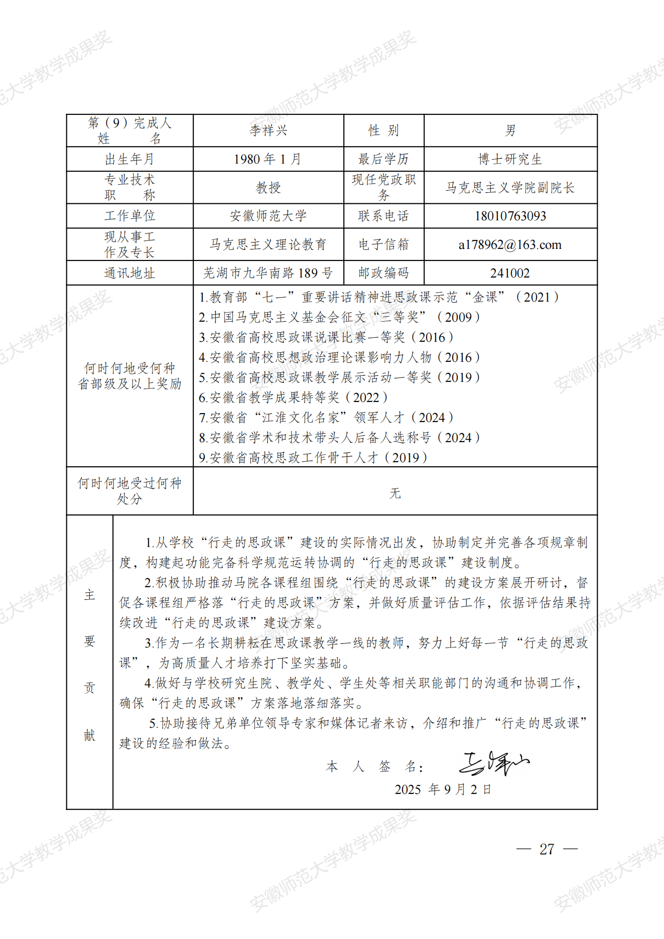 行走的思政课:新时代高校实践育人模式建构与创新 教学成果奖申报书