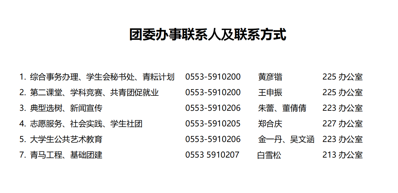 校团委事务办理联系人及联系方式